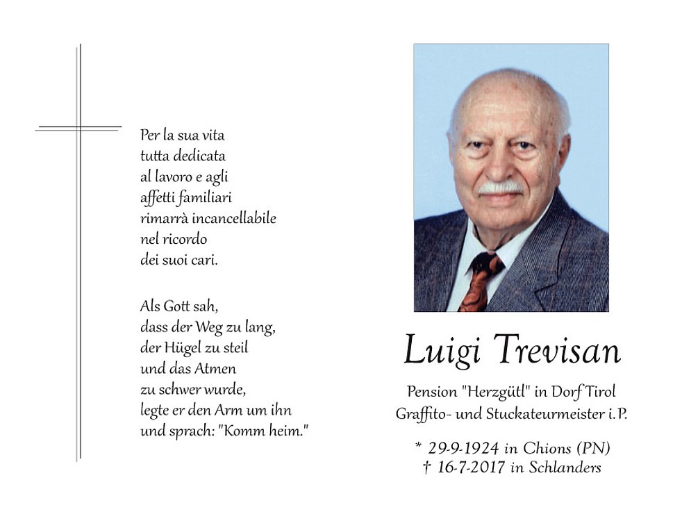 * 29.9.1924 in Chions (PN) † 16.7.2017 in Schlanders