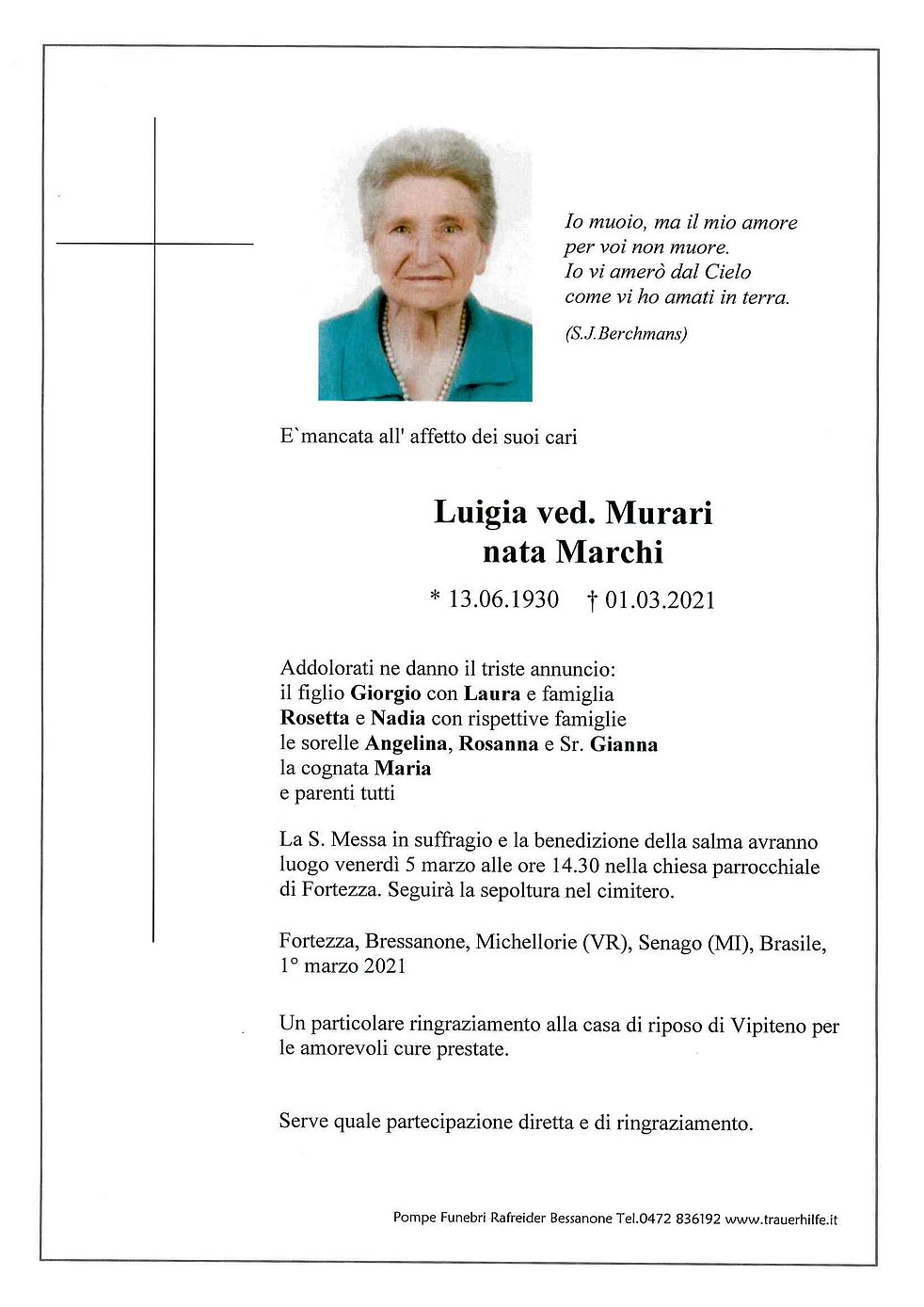 La S. Messa in suffragio e la benedizione della salma avranno luogo venerdì 5 marzo alle ore 14.30 nella chiesa parrocchiale di Fortezza. Seguirà la sepoltura nel cimitero.