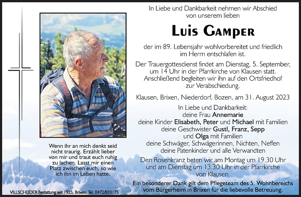 Liebe Trauerfamilie, wir nehmen aufrichtig Anteil an eurem Schmerz über den Verlust eures lieben Luis. Wir werden ihn in guter Erinnerung behalten und wünschen euch viel Kraft und Trost in dieser schweren Zeit. Familie Psaier Teis