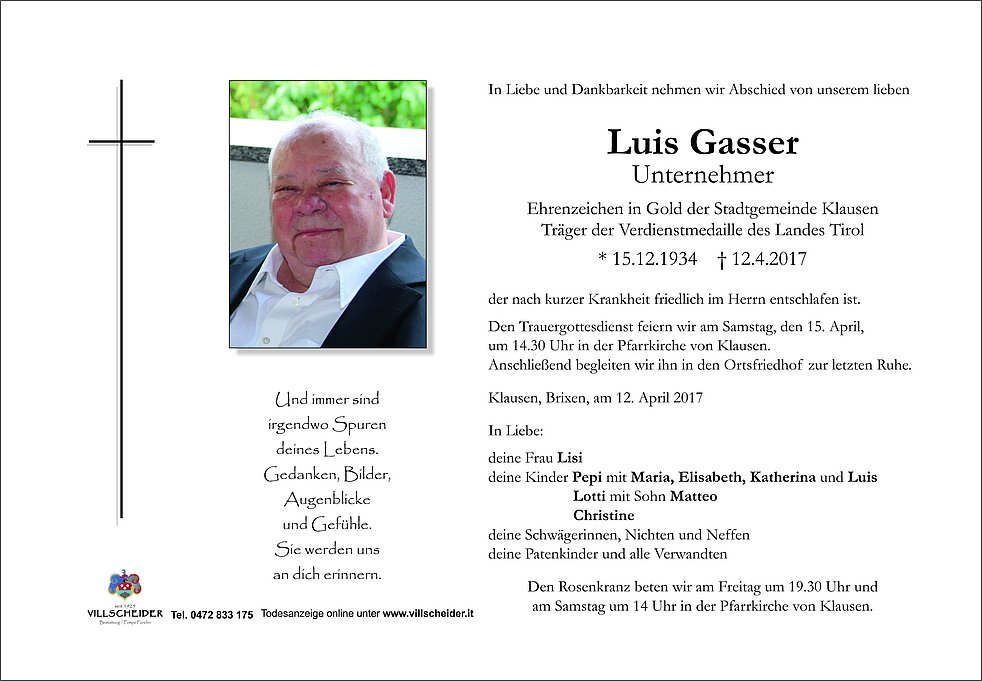 am Samstag um 14 Uhr in der Pfarrkirche von Klausen.