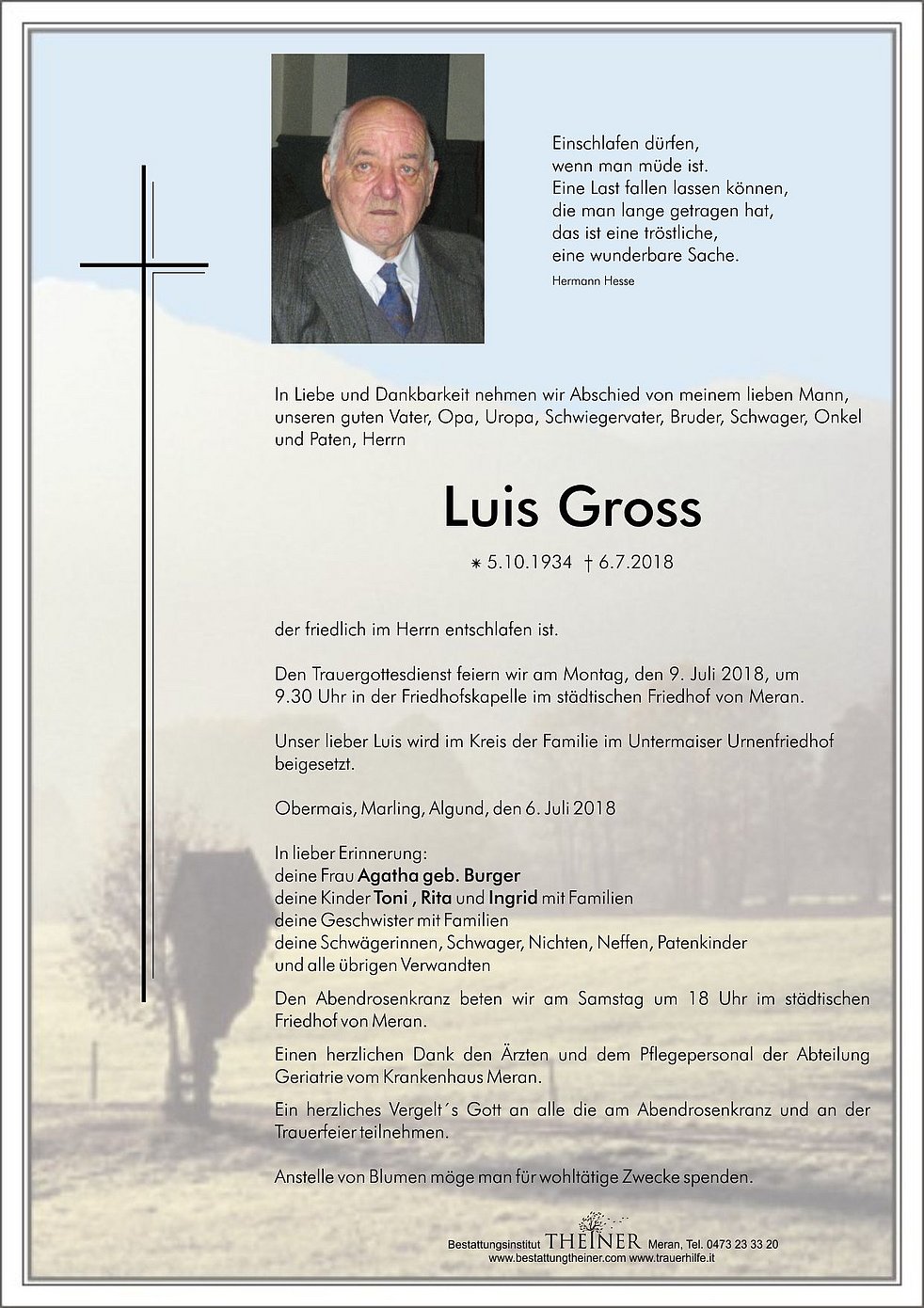 Unser lieber Luis wird im Kreis der Familie im Untermaiser Urnenfriedhof beigesetzt.
