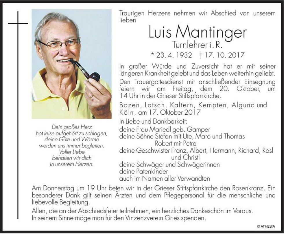 Begräbnisgottesdienst: 20.10. - 14:00 Uhr Grieser Stiftspfarrkirche