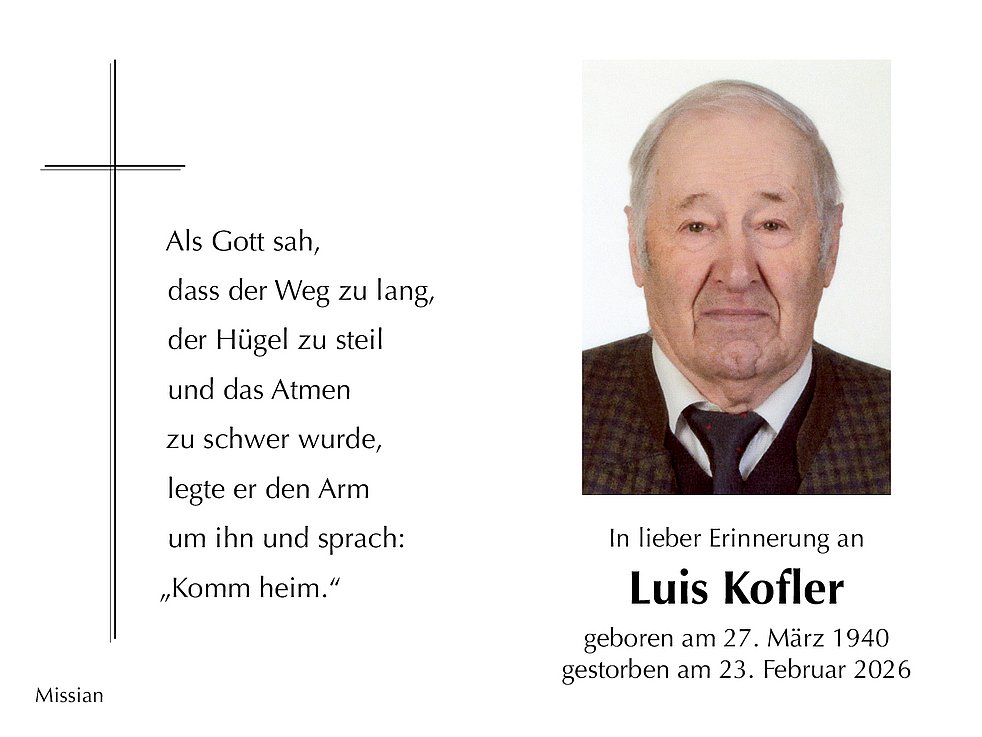 Den Trauergottesdienst mit anschließender Verabschiedung feiern wir am Mittwoch, dem 25. Februar um 14 Uhr in der Pfarrkirche von St. Pauls/Eppan.