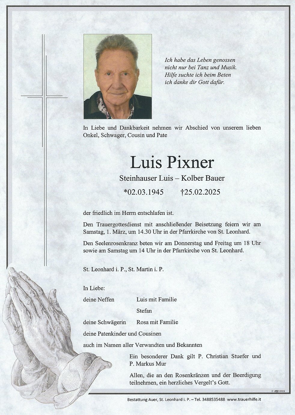 Den Trauergottesdienst mit anschließender Beisetzung feiern wir am Samstag, 1. März, um 14.30 Uhr in der Pfarrkirche von St. Leonhard.