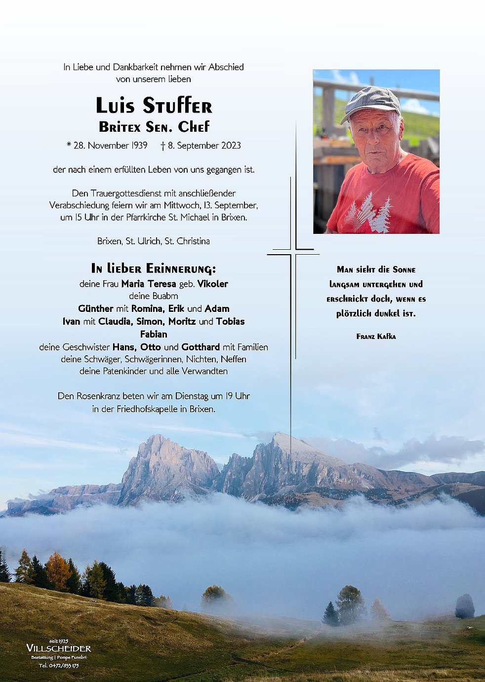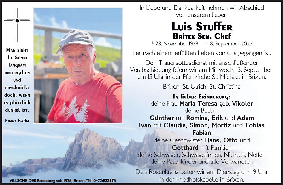 Liebe Maria Teresa, lieber Günther, lieber Ivan und lieber Fabian mit Angehörigen.