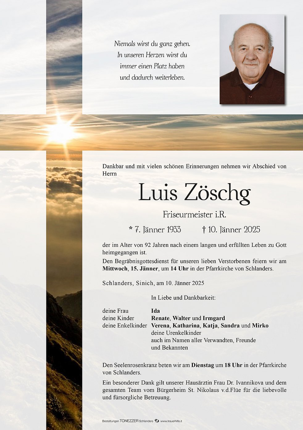 Die Uhr an deinem Arm steht nun für immer still, die lange Erdenzeit hat ausgedient . Der Tod die Gebrechen sind vorbei .Ich glaube , zurück willst du nicht mehr.Nun bist du fort,denn du lebst in Gottes Licht. Der Trauerfamilie mein aufrichtiges Mitgefühl.