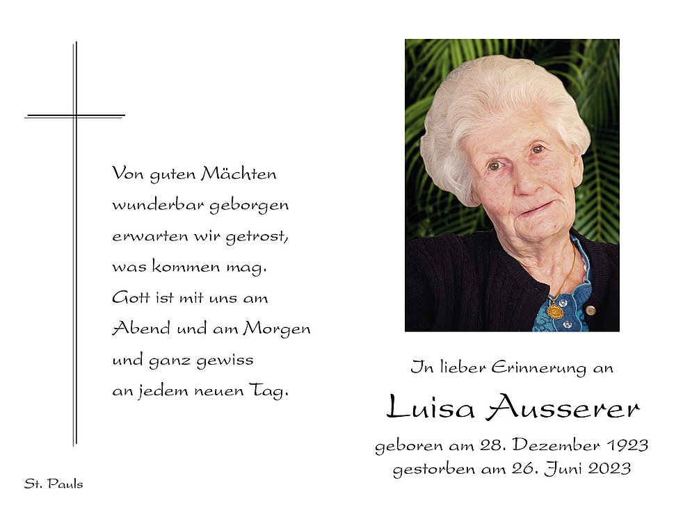 Den Trauergottesdienst mit anschließender Verabschiedung feiern wir am Freitag, dem 30. Juni um 17 Uhr in der Pfarrkirche von St. Pauls.