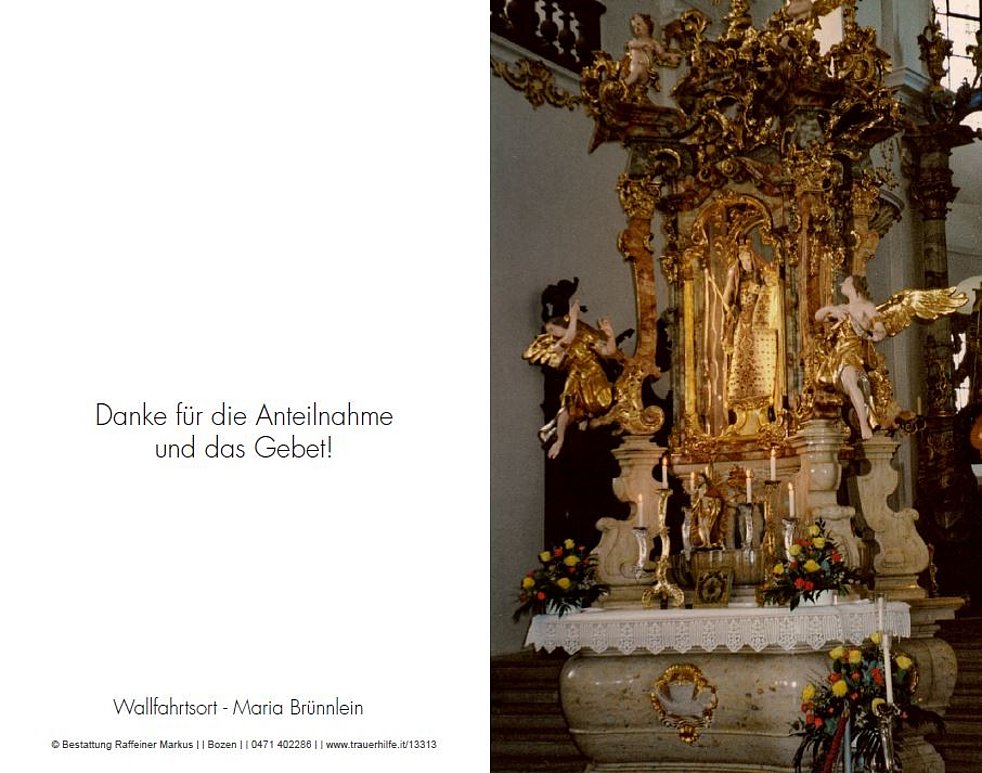 Anschlieβend um 11.00 Uhr begleiten wir unsere liebe Verstorbene zur letzten Ruhe auf den städtischen Friedhof von Bozen-Oberau, ausgehend vom Haupteingang.
