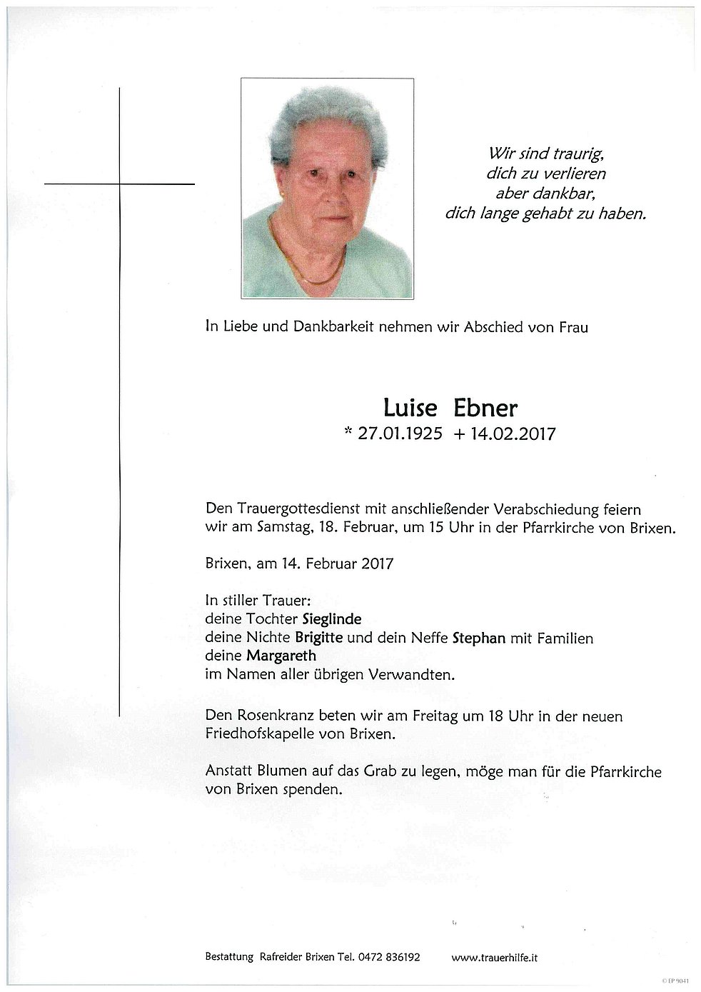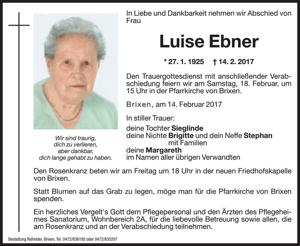 Den Trauergottesdienst mit anschließender Verabschiedung feiern wir am Samstag, 18. Februar, um 15 Uhr in der Pfarrkirche von Brixen.