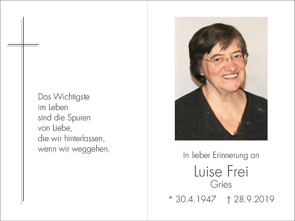 In Liebe und Dankbarkeit nehmen wir Abschied von unserer lieben Schwester, Schwägerin, Tante und Patin, Frau