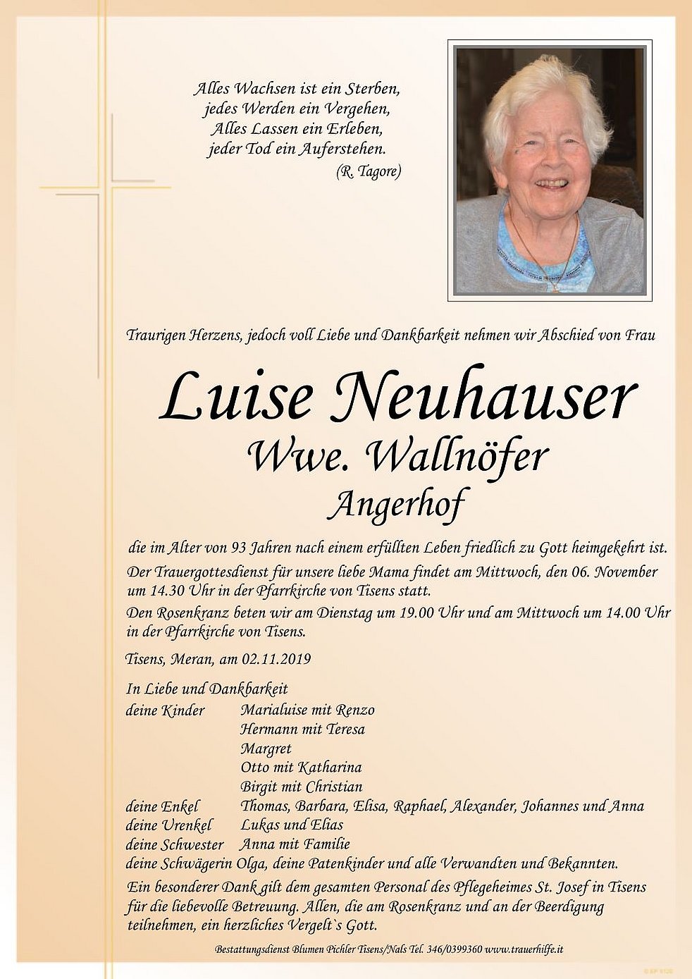 Begräbnisgottesdienst: 06.11. - 14:30 Uhr Pfarrkirche Tisens