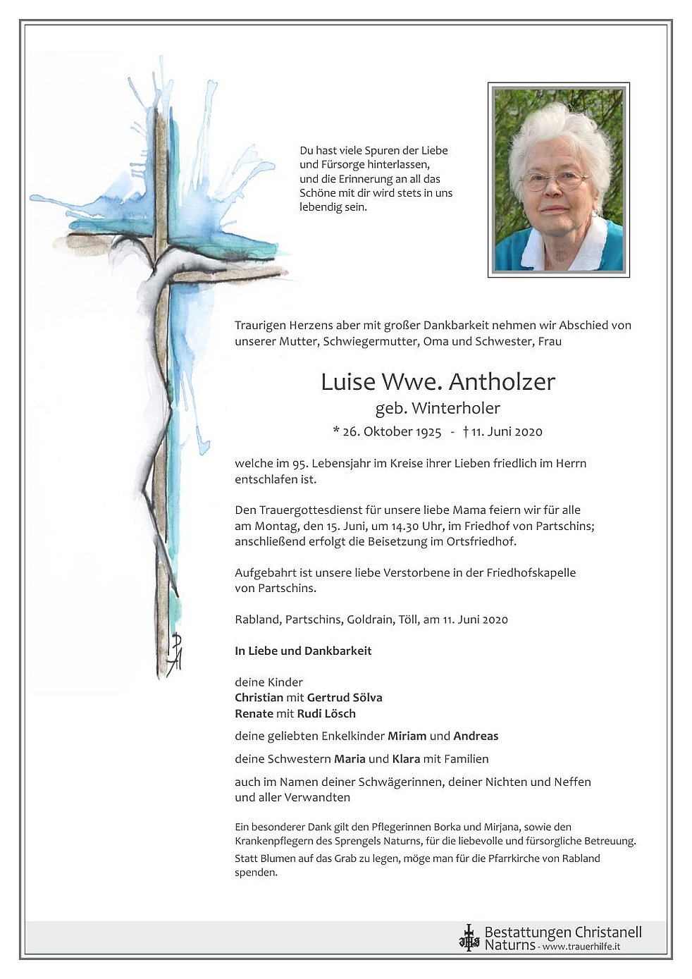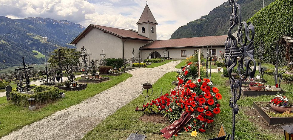 Den Trauergottesdienst für unsere liebe Mama feiern wir für alle am Montag, den 15. Juni, um 14.30 Uhr, im Friedhof von Partschins; anschließend erfolgt die Beisetzung im Ortsfriedhof.