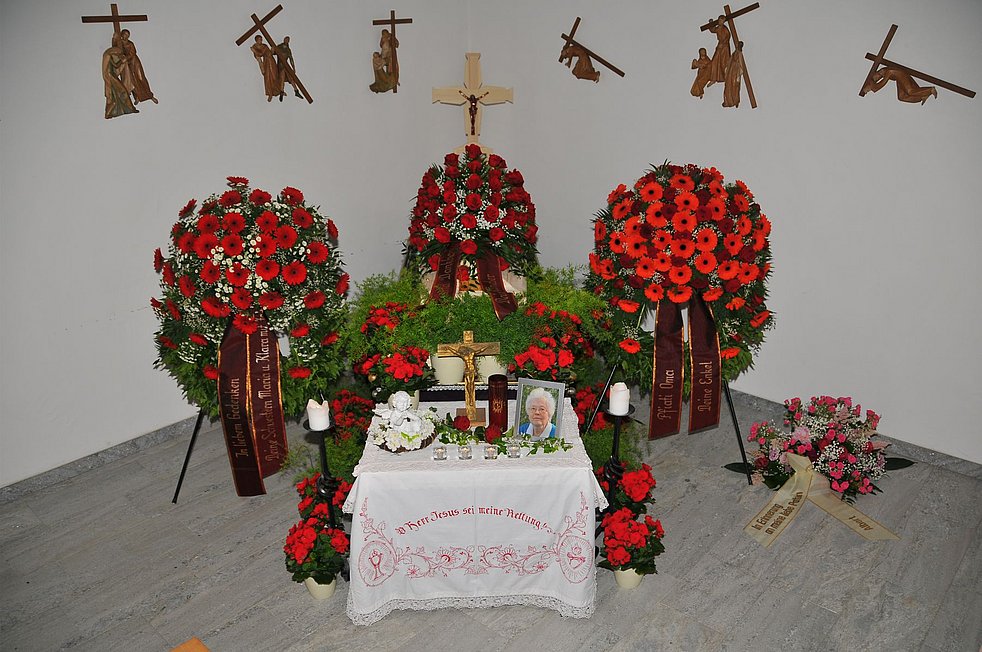 Aufgebahrt ist unsere liebe Verstorbene in der Friedhofskapelle von Partschins.