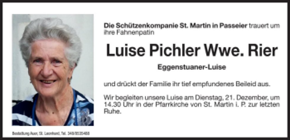 Den Trauergottesdienst mit anschließender Beisetzung feiern wir am Dienstag, 21. Dezember, um 14.30 Uhr in der Pfarrkirche von St. Martin.