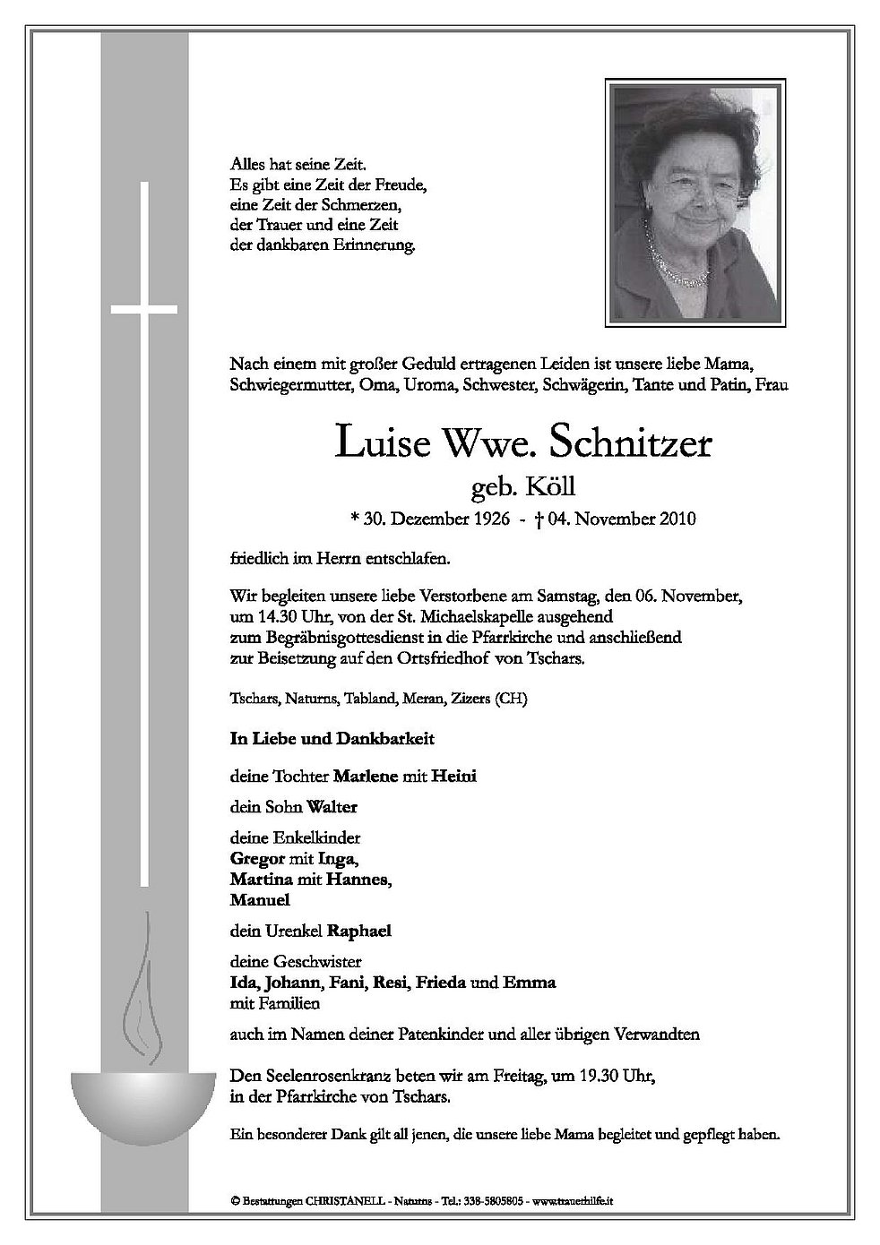Wir begleiten unsere liebe Verstorbene am Samstag, den 06. November, um 14.30 Uhr, von der St. Michaelskapelle ausgehend zum Begräbnisgottesdienst in die Pfarrkirche und anschließend zur Beisetzung auf den Ortsfriedhof von Tschars.