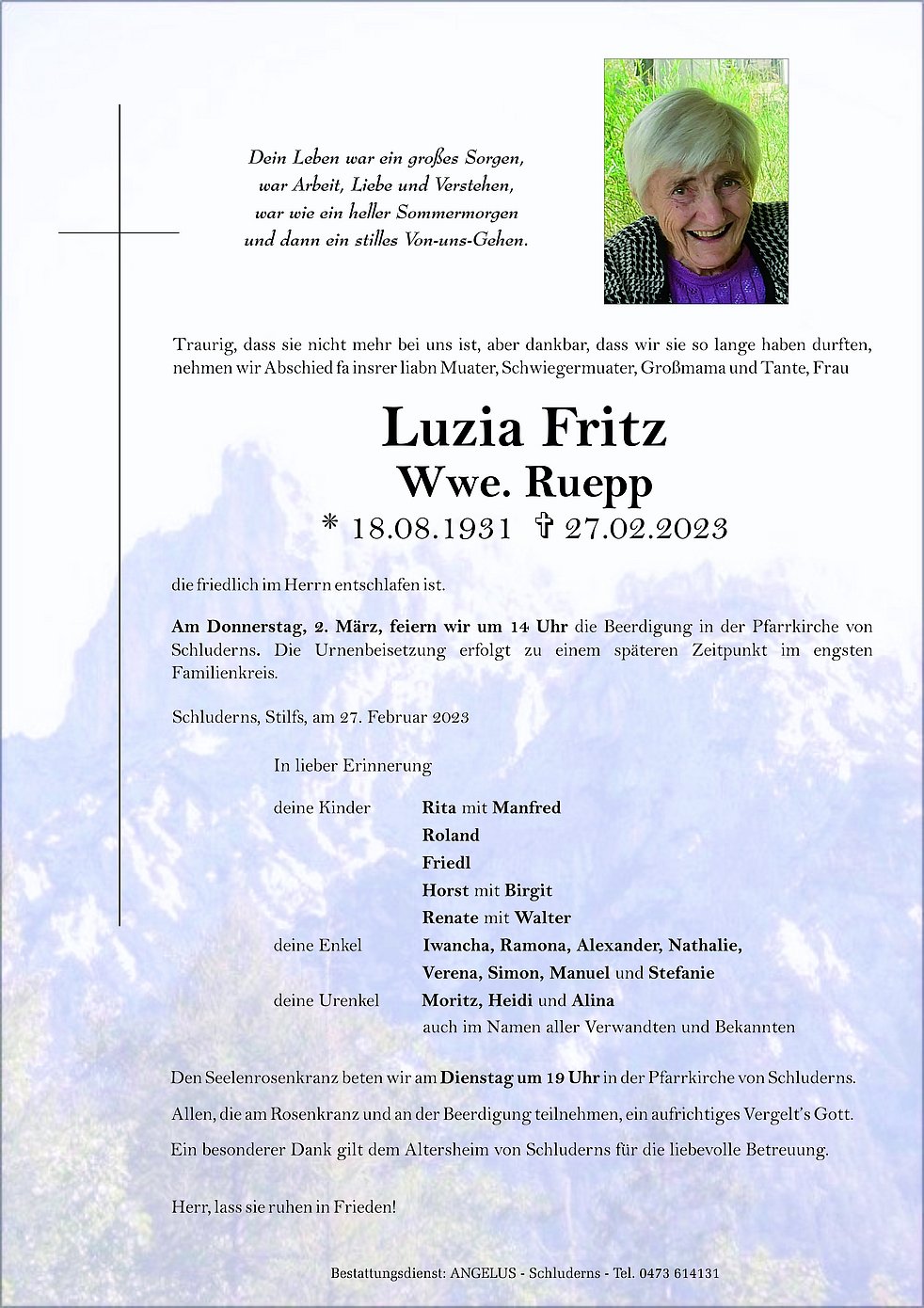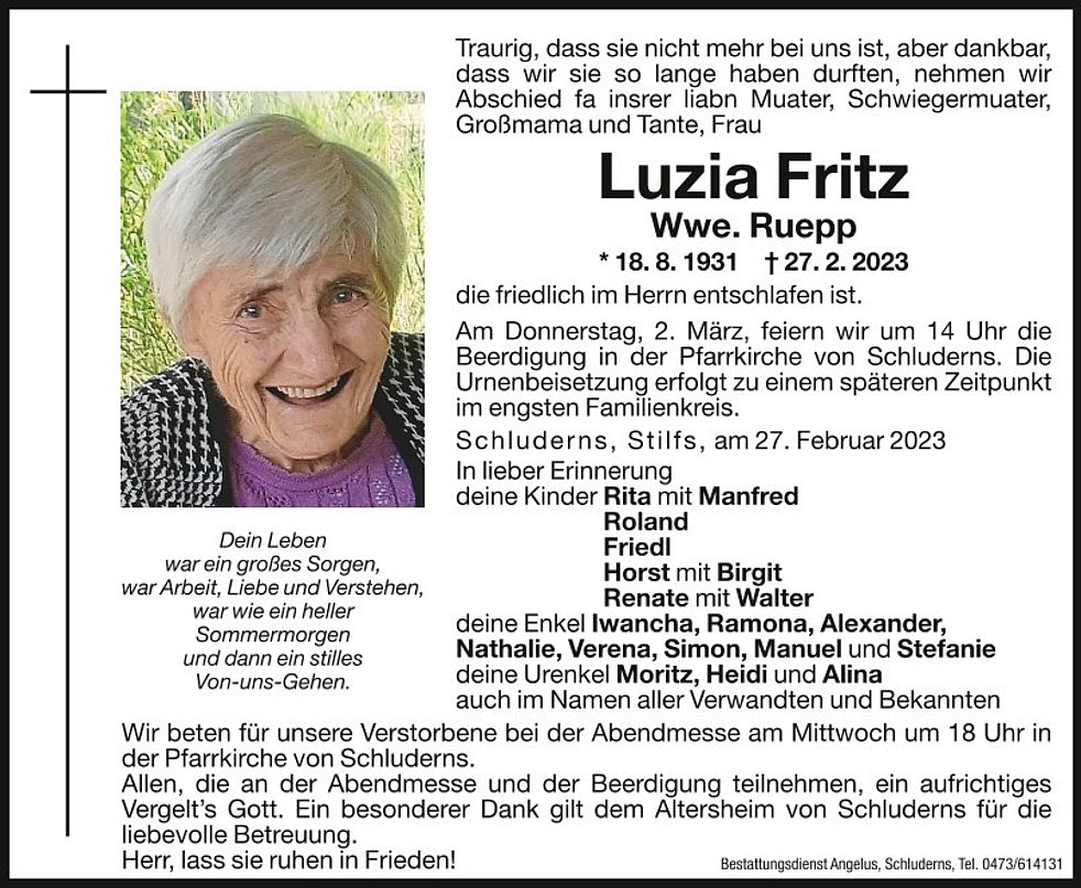 Liebe Renate, liebe Trauerfamilie unser herziches Beileid zum Tod eurer Mutter, Schwiegermutter und Oma.