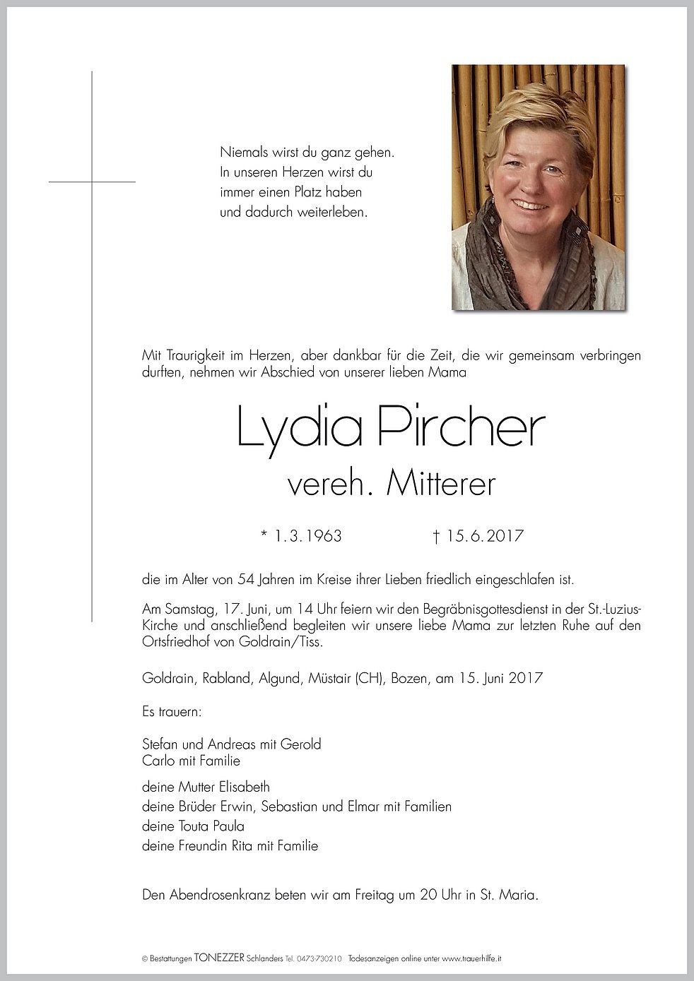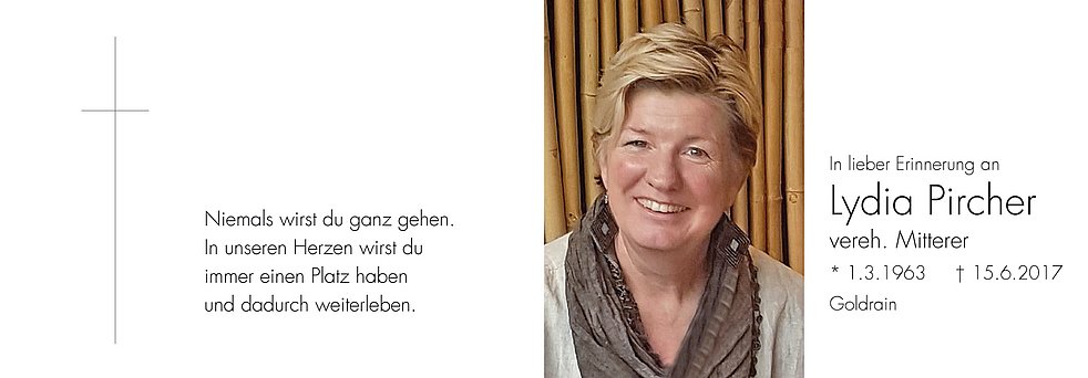 Am Samstag, 17. Juni, um 14 Uhr feiern wir den Begräbnisgottesdienst in der St.-Luzius-Kirche und anschließend begleiten wir unsere liebe Mama zur letzten Ruhe auf den Ortsfriedhof von Goldrain/Tiss.