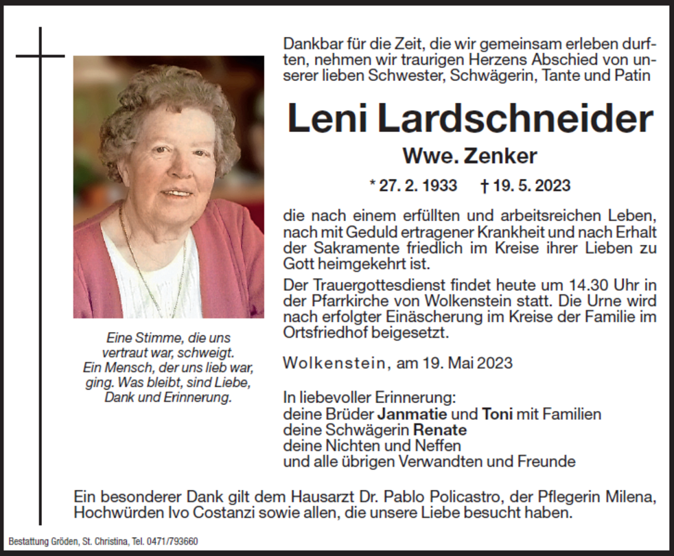 Leni Lardschneider Wwe. Zenker
