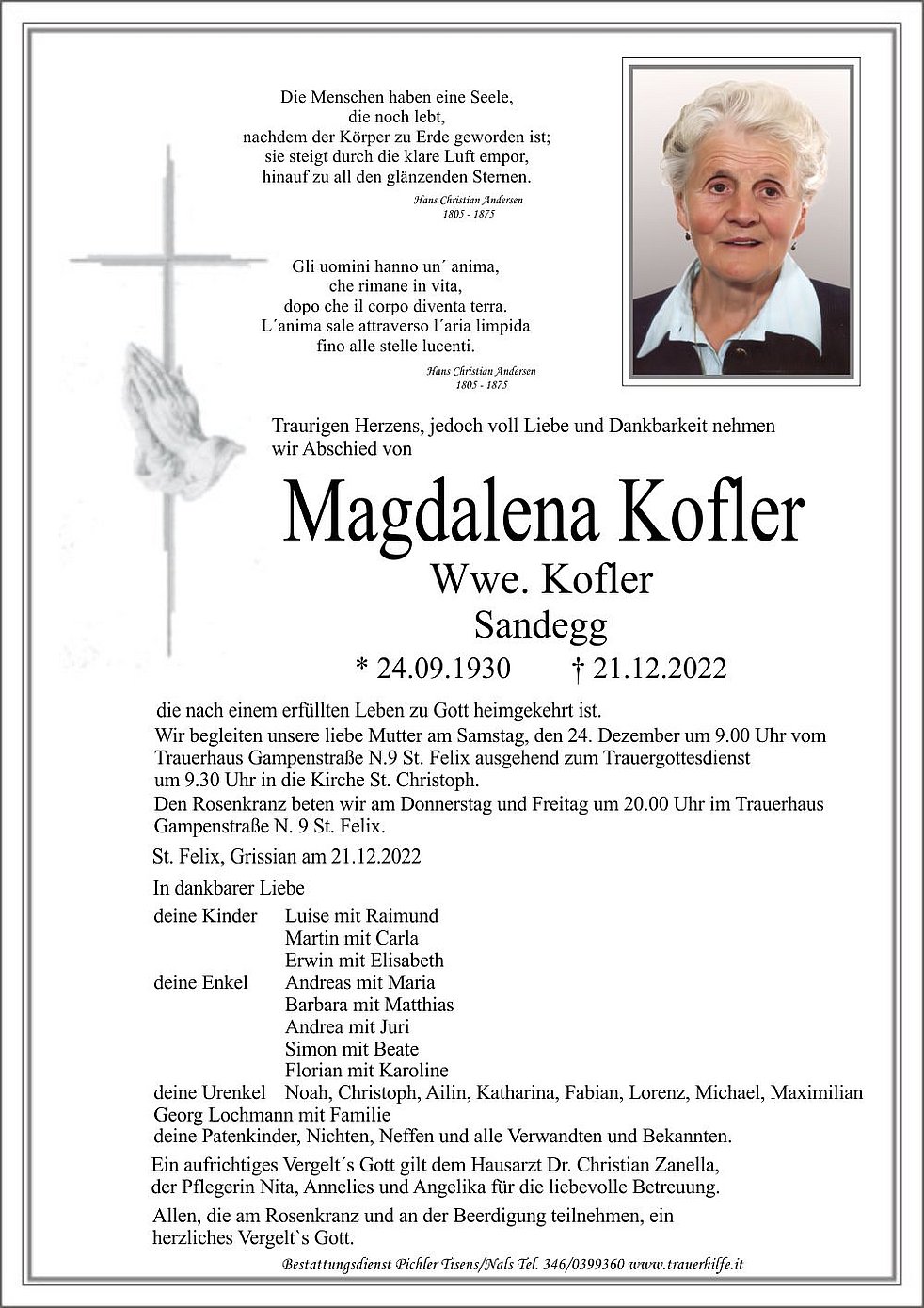 Wir begleiten unsere liebe Mutter am Samstag, den 24. Dezember um 9.00 Uhr vom