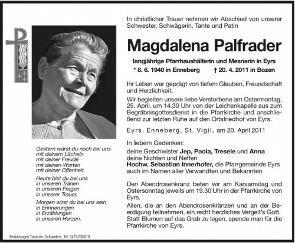 * 8. 6. 1940 in Enneberg † 20. 4. 2011 in Bozen