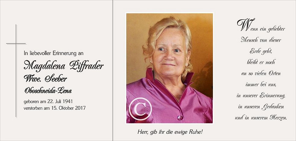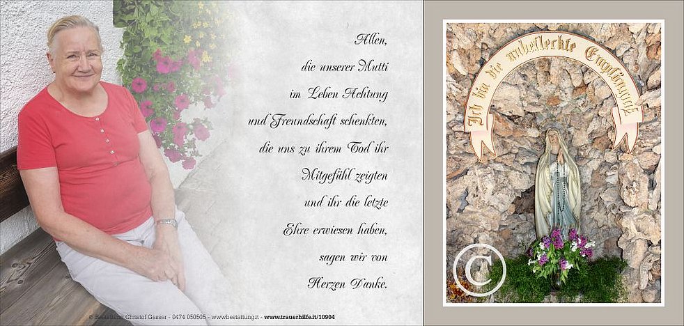 Vergelt‘s Gott allen, die an den Seelenrosenkränzen und an der Beerdigung teilnehmen und ihrer im Gebet gedenken.