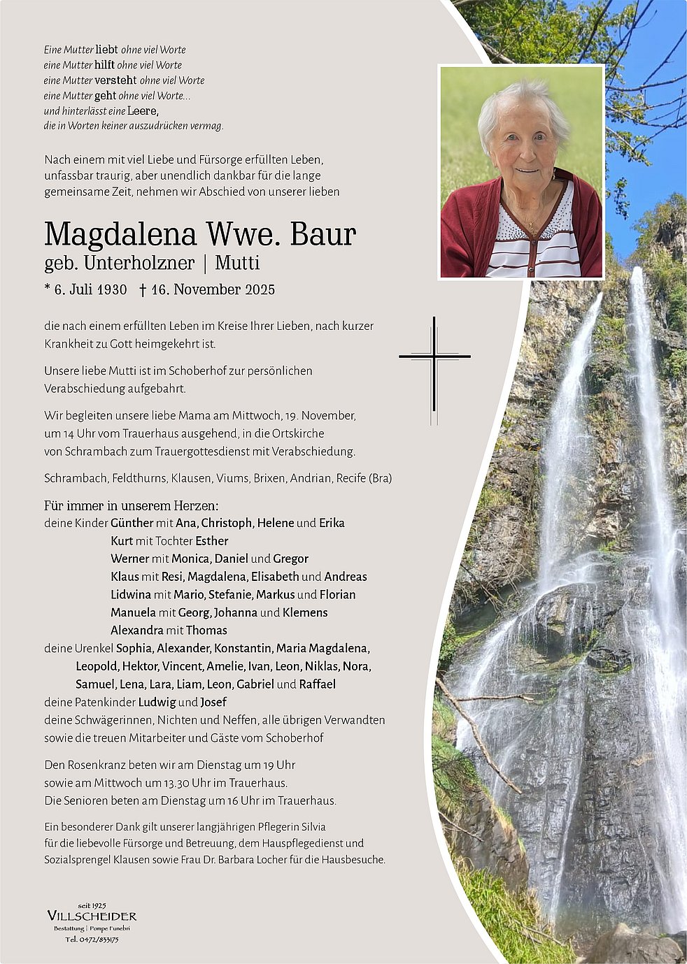 Liebe Mutti, du warst eine Mutti wie man sie sich nur wünschen kann, lebenserfahren, tatkräftig, unterstützend und wohlwollend. Eine Mutti für alle. Danke für alles, den Angehörigen aufrichtiges Beileid. Pfiati Mutti, mochs guat, griass mir olle de vorausgegongen sein. Irgendwann segmer ins wieder. ❤