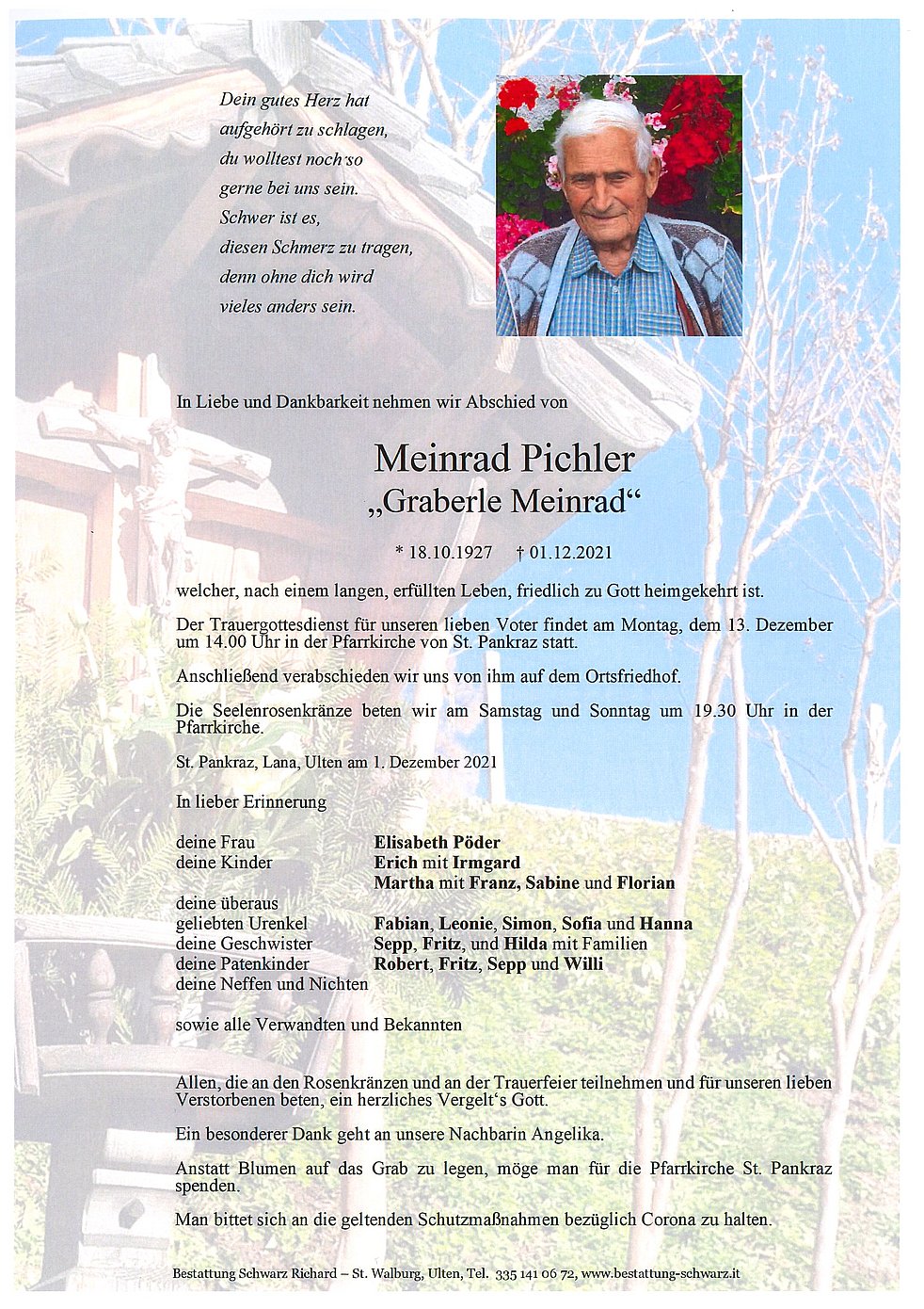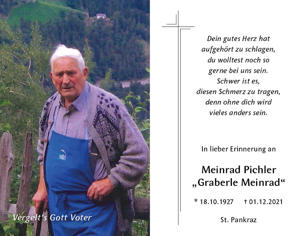 Der Trauergottesdienst für unseren lieben Voter findet am Montag, dem 13. Dezember um 14.00 Uhr in der Pfarrkirche von St. Pankraz statt.