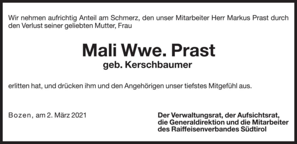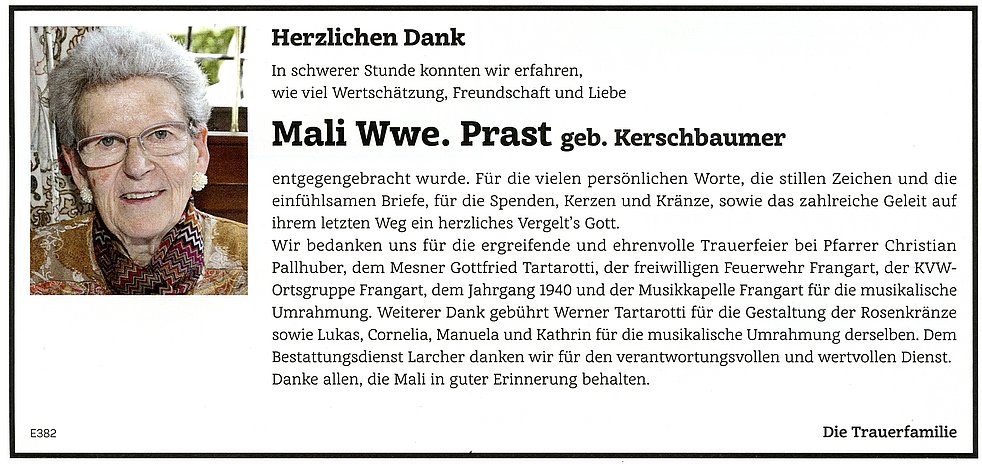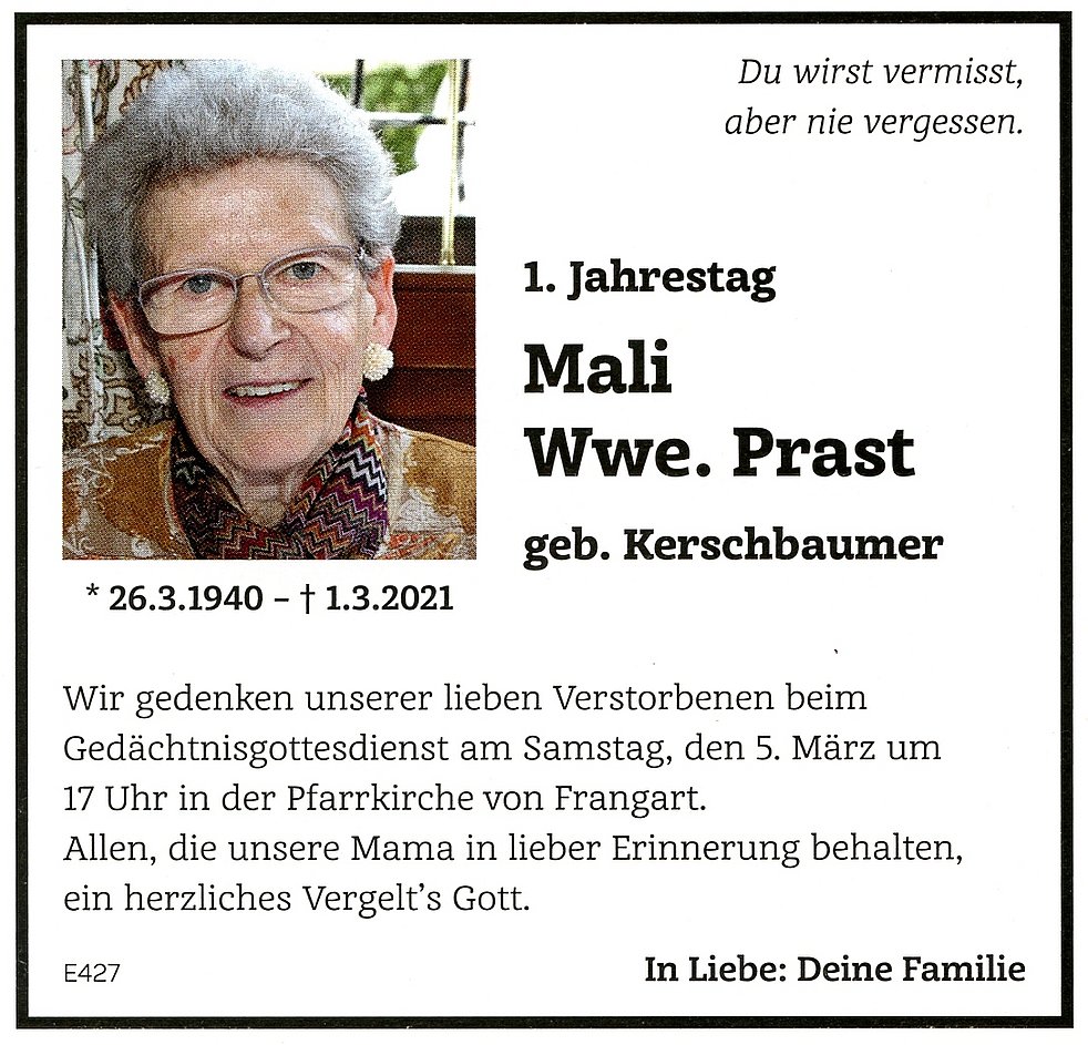 Mali Wwe. Prast geb. Kerschbaumer