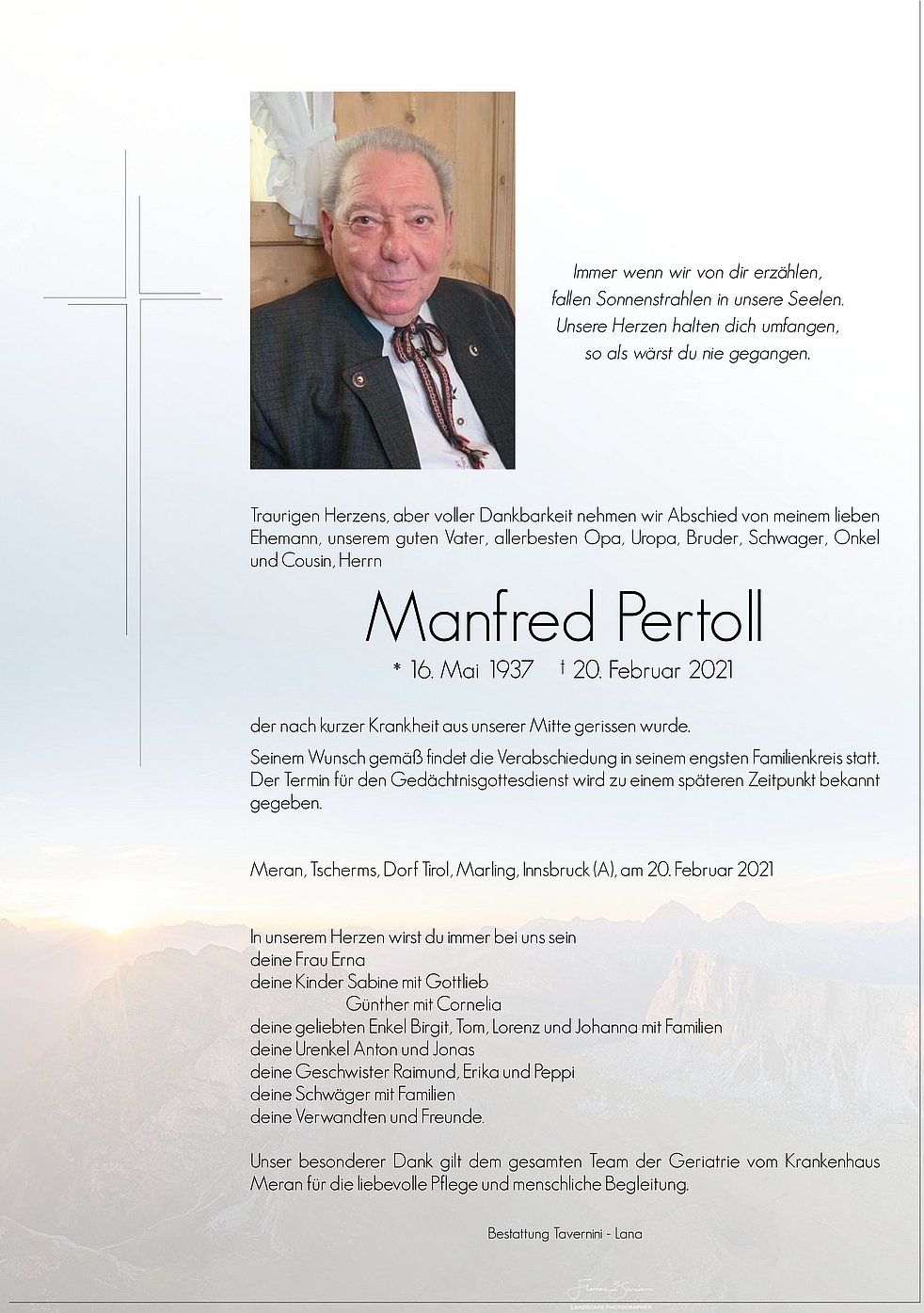 Liebe Erna und Angehörige