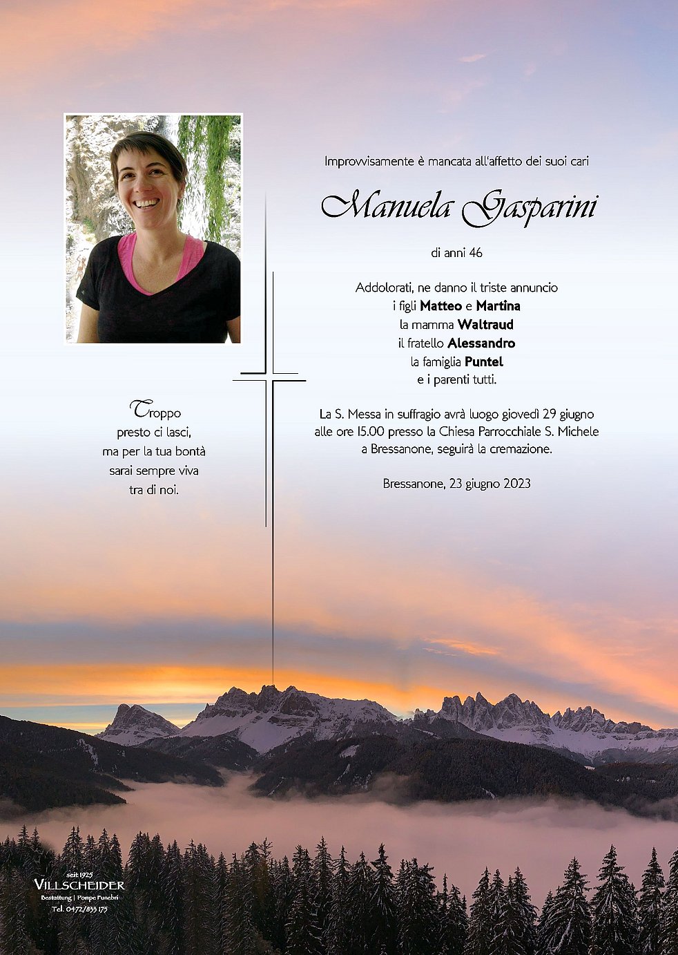 Le mie più sentite condoglianze per l'improvvisa scomparsa di Manuela