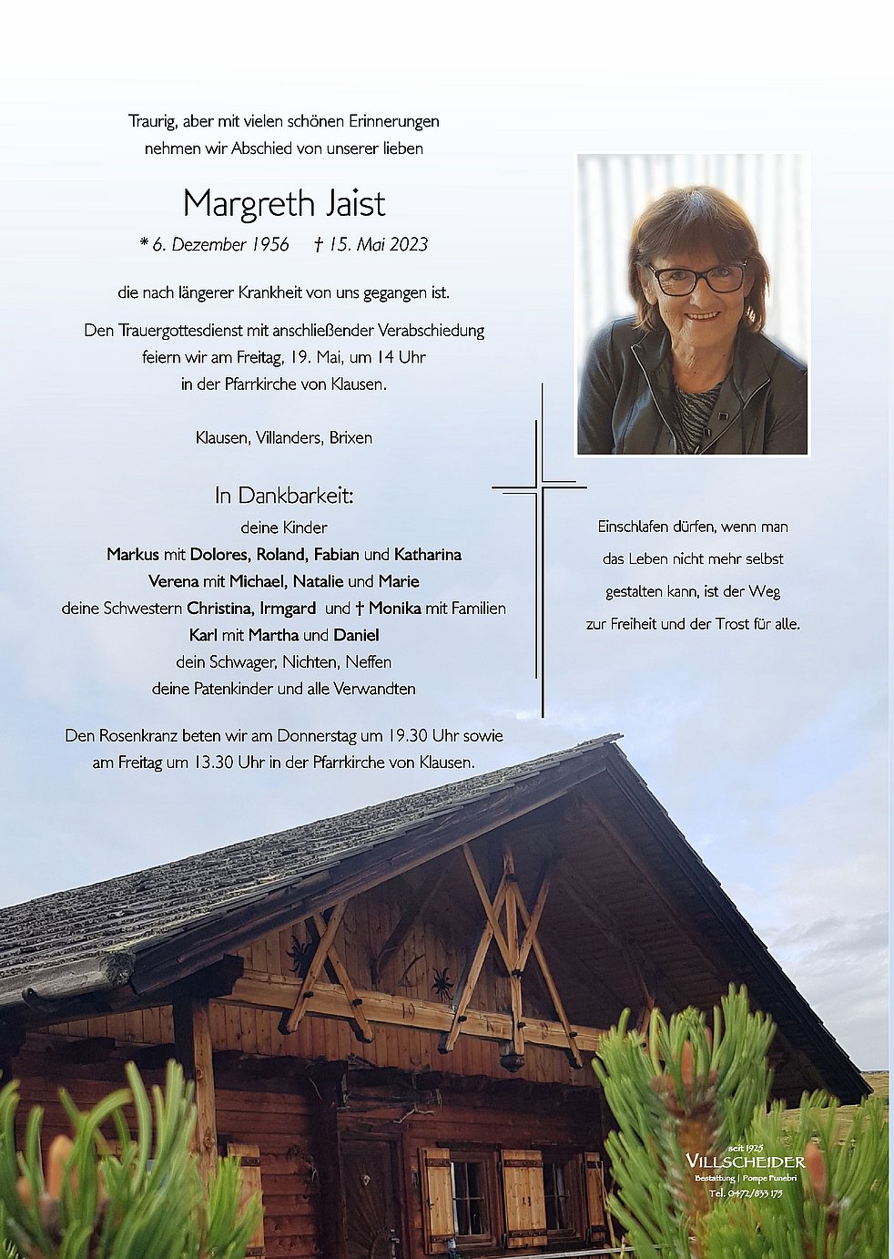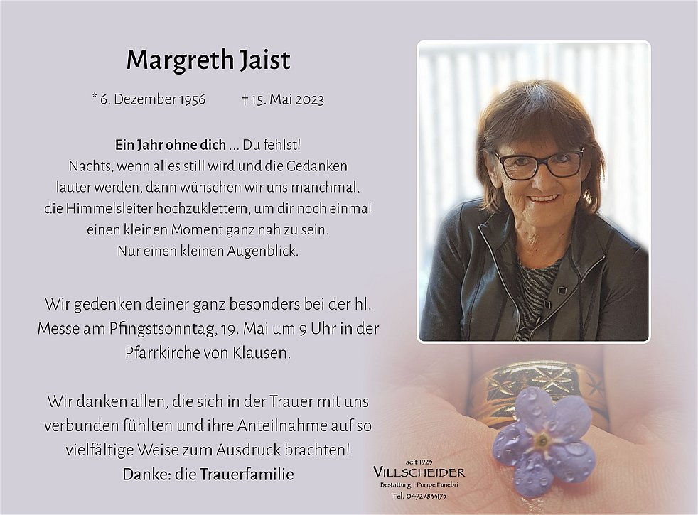 Mein aufrichtiges Beileid. Konnte Frau Margareth im Spital kennenlernen und sie wird mir in guter positiver Erinnerung bleiben. Ruhe in Frieden.