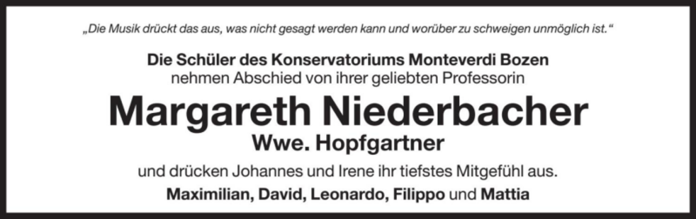 Lehrerin am Konservatorium in Bozen