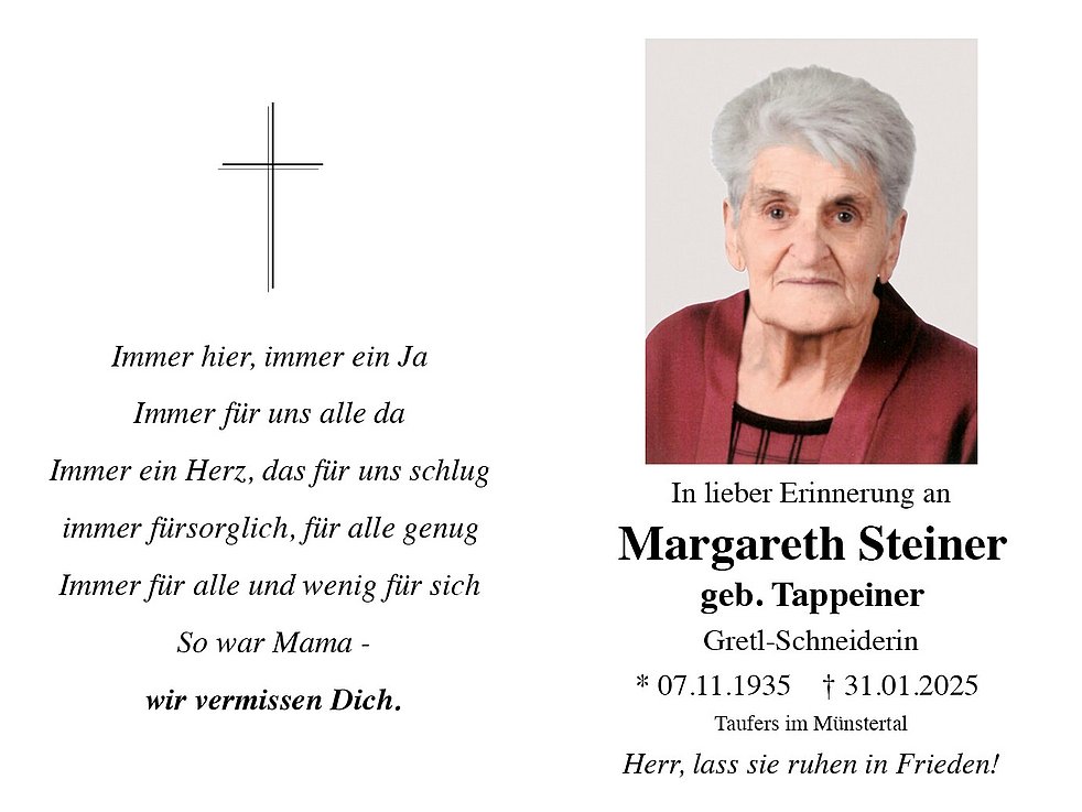 Margareth Steiner geb. Tappeiner