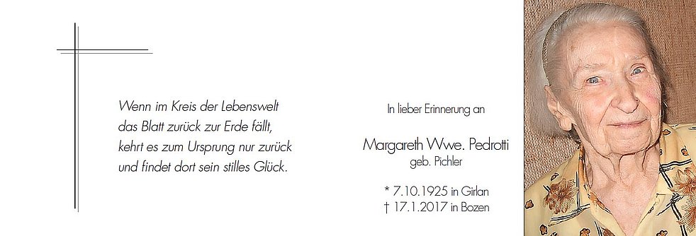 Den Trauergottesdienst mit anschließender Einsegnung feiern wir am Mittwoch, den 25. Jänner, um 13.30 Uhr in der St. Gertraud-Kirche in Haslach.