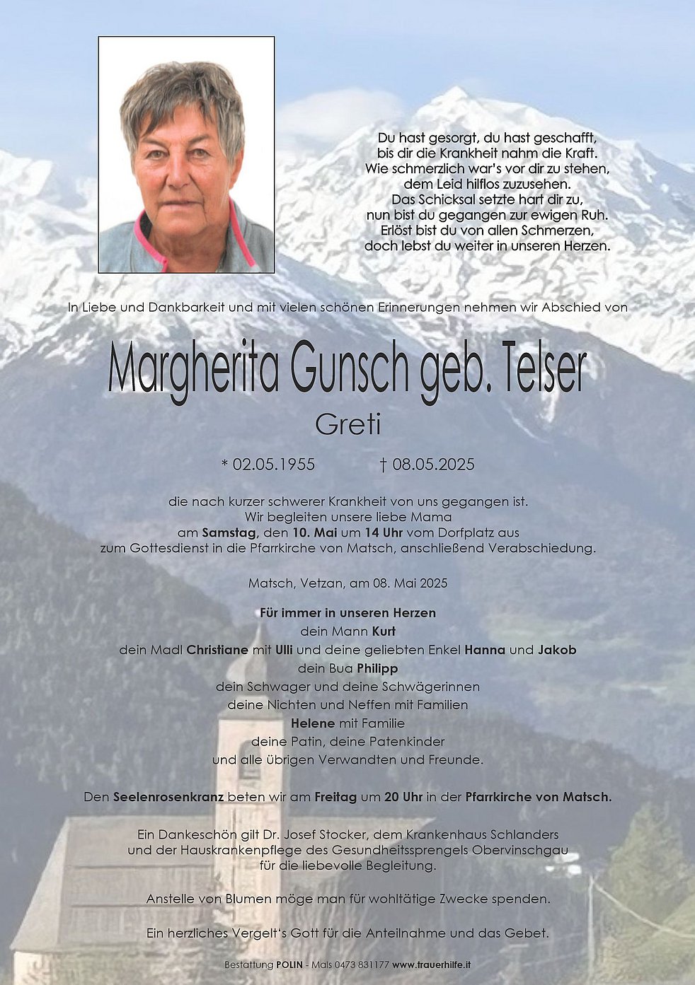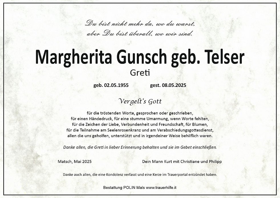 Ein herzliches Vergelt‘s Gott für die Anteilnahme und das Gebet.