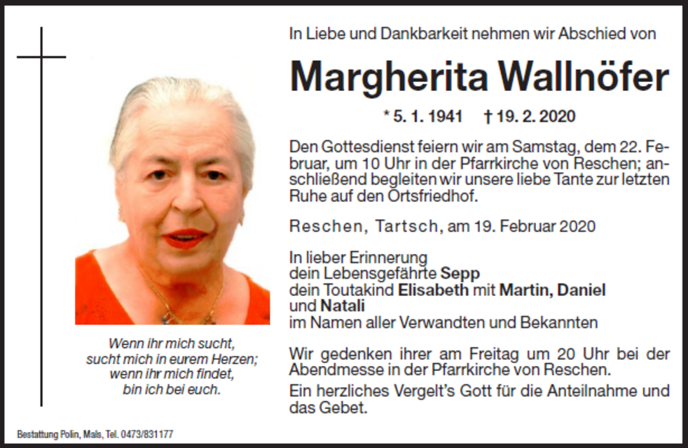 Ein herzliches Vergelt’s Gott für die Anteilnahme und das Gebet.