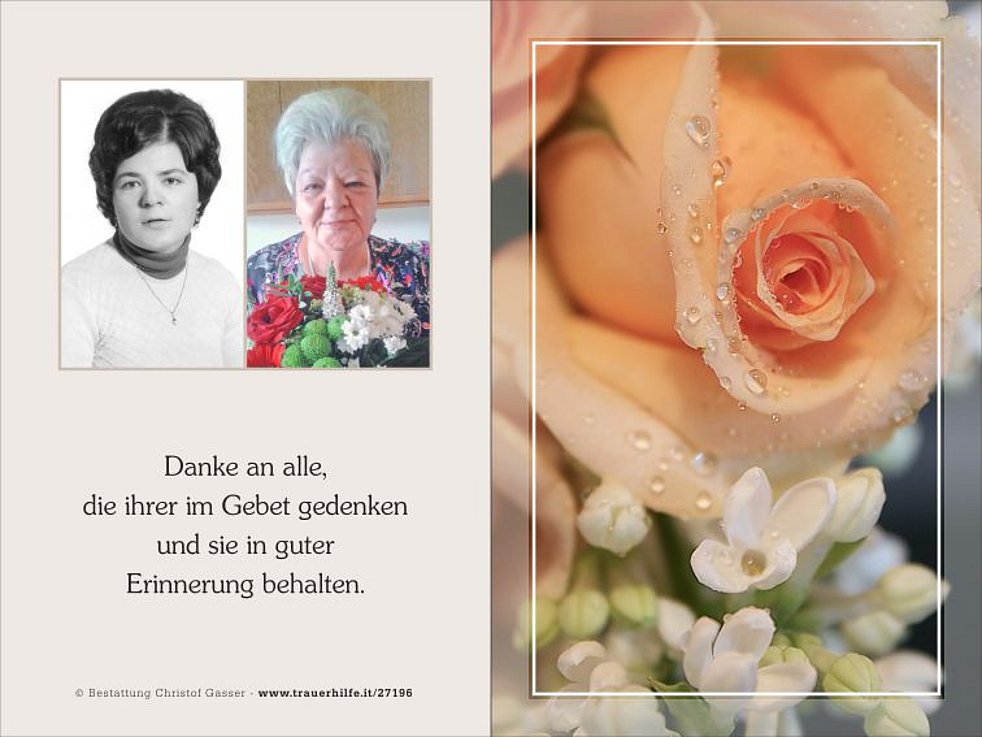 Unsere liebe Mama ist ab Freitag in der Friedhofskapelle von Terenten aufgebahrt.