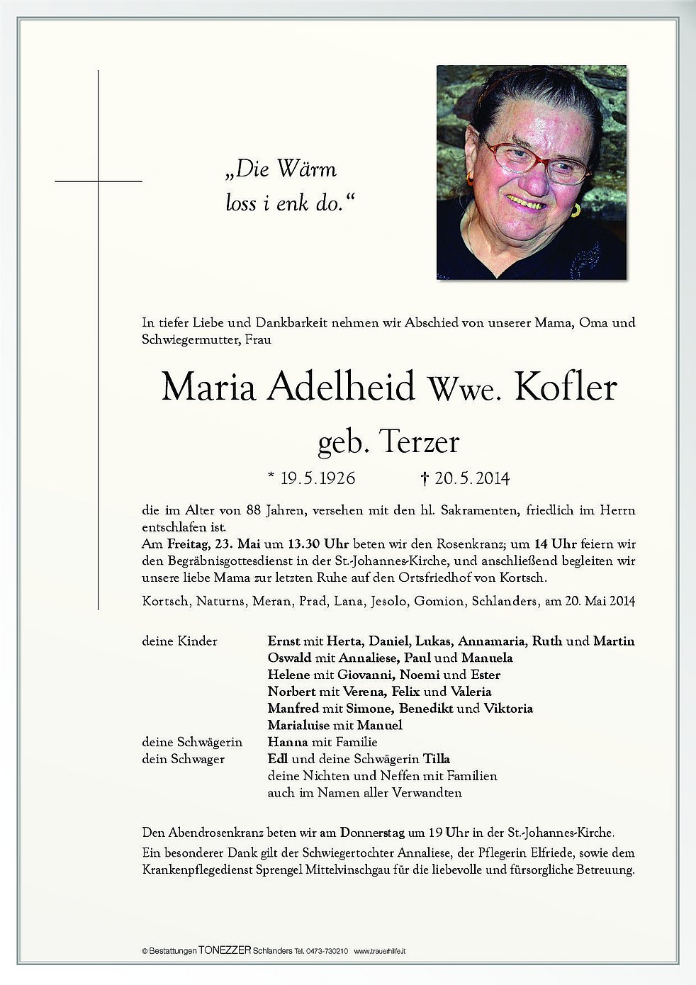 Am Freitag, 23. Mai um 13.30 Uhr beten wir den Rosenkranz; um 14 Uhr feiern wir den Begräbnisgottesdienst in der St.-Johannes-Kirche, und anschließend begleiten wir unsere liebe Mama zur letzten Ruhe auf den Ortsfriedhof von Kortsch.