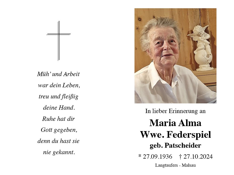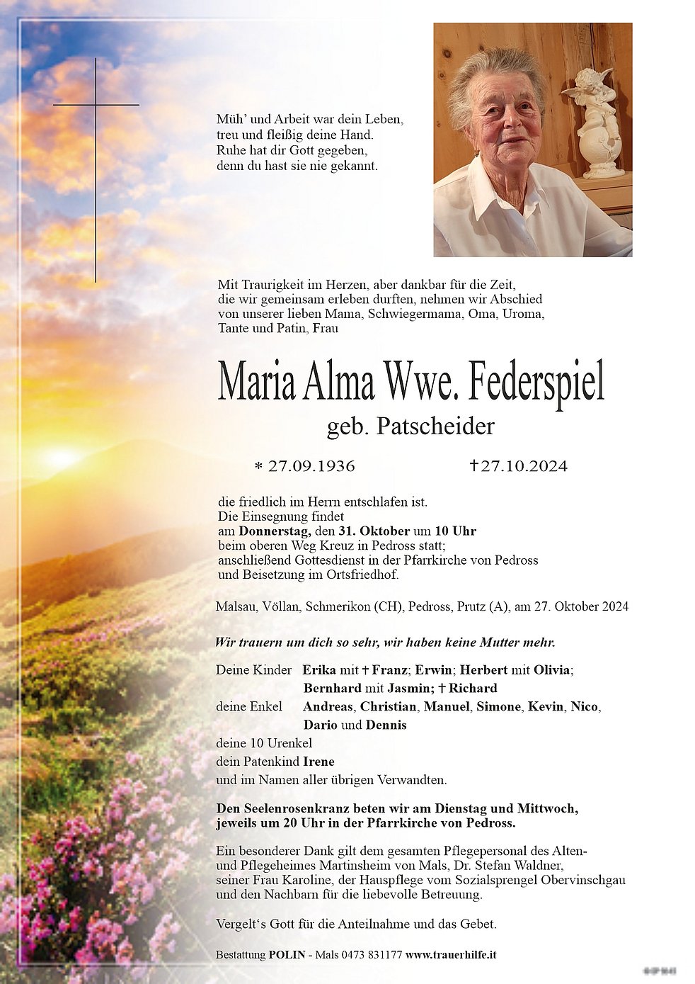 Malsau, Völlan, Schmerikon (CH), Pedross, Prutz (A), am 27. Oktober 2024