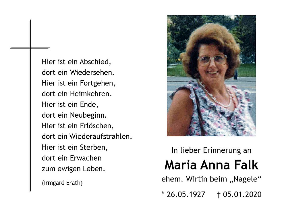 Ein besonderer Dank gilt dem Hausarzt Dr. Heinz Santifaller und dem Pflegepersonal des Bürgerheimes, Wohnbereich 5 und Wohnbereich 2, für die liebevolle Betreuung sowie allen, die an den Rosenkränzen und an der Beerdigung teilnehmen.