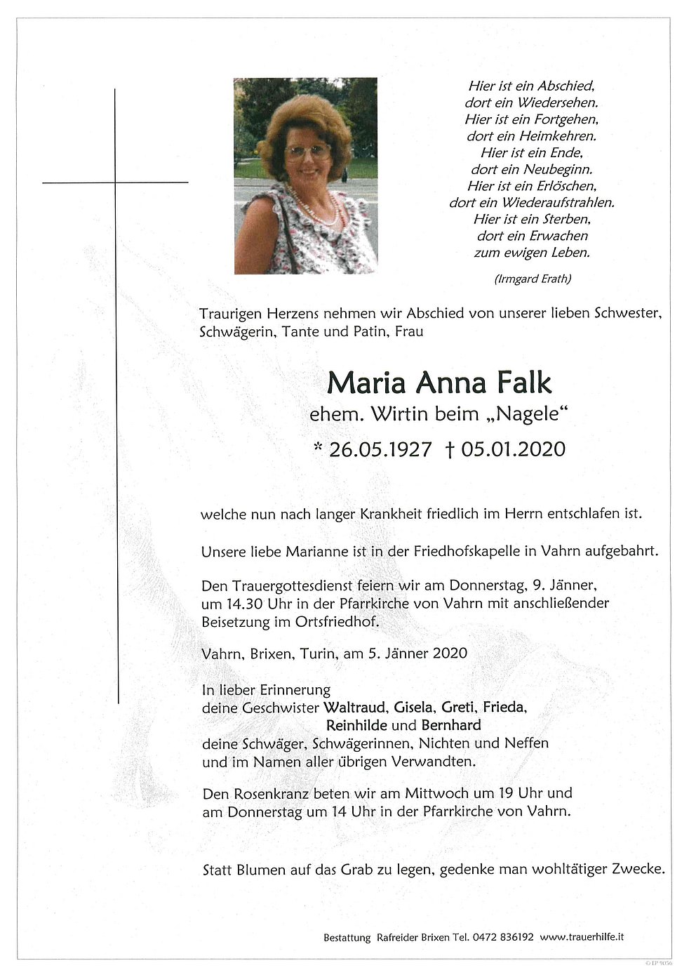 Den Trauergottesdienst feiern wir am Donnerstag, 9. Jänner, um 14.30 Uhr in der Pfarrkirche von Vahrn mit anschließender Beisetzung im Ortsfriedhof.