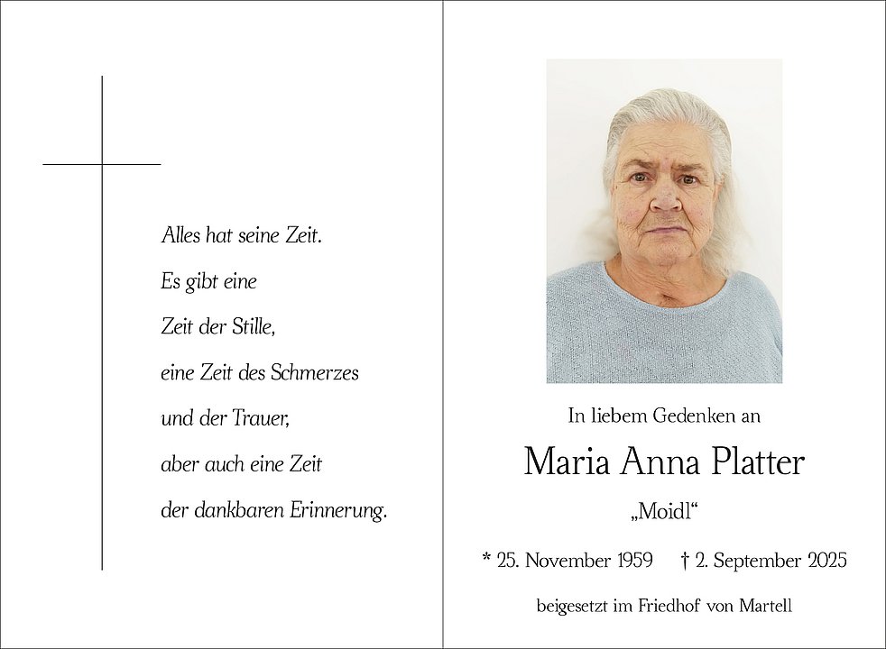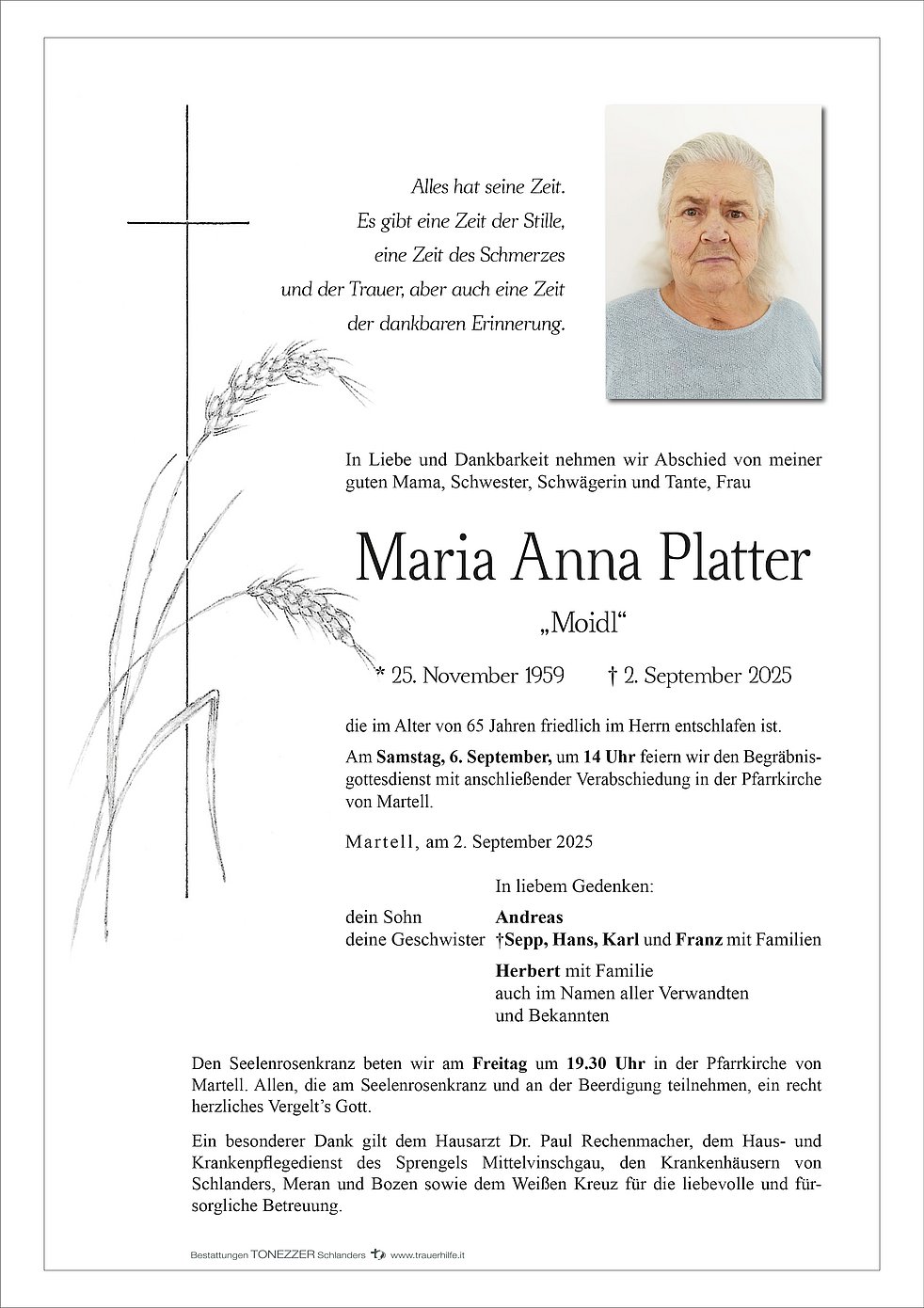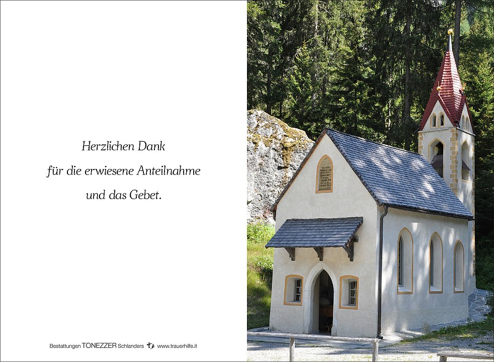 Begräbnisgottesdienst: 06.09. - 14:00 Uhr Pfarrkirche von Martell
