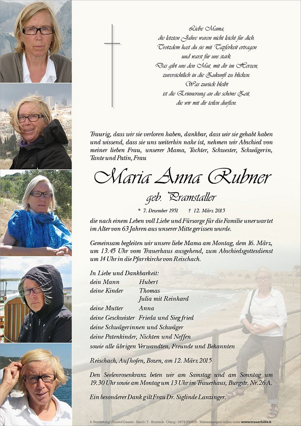Traurig, dass wir sie verloren haben, dankbar, dass wir sie gehabt haben und wissend, dass sie uns weiterhin nahe ist, nehmen wir Abschied von meiner lieben Frau, unserer Mama, Tochter, Schwester, Schwägerin, Tante und Patin, Frau