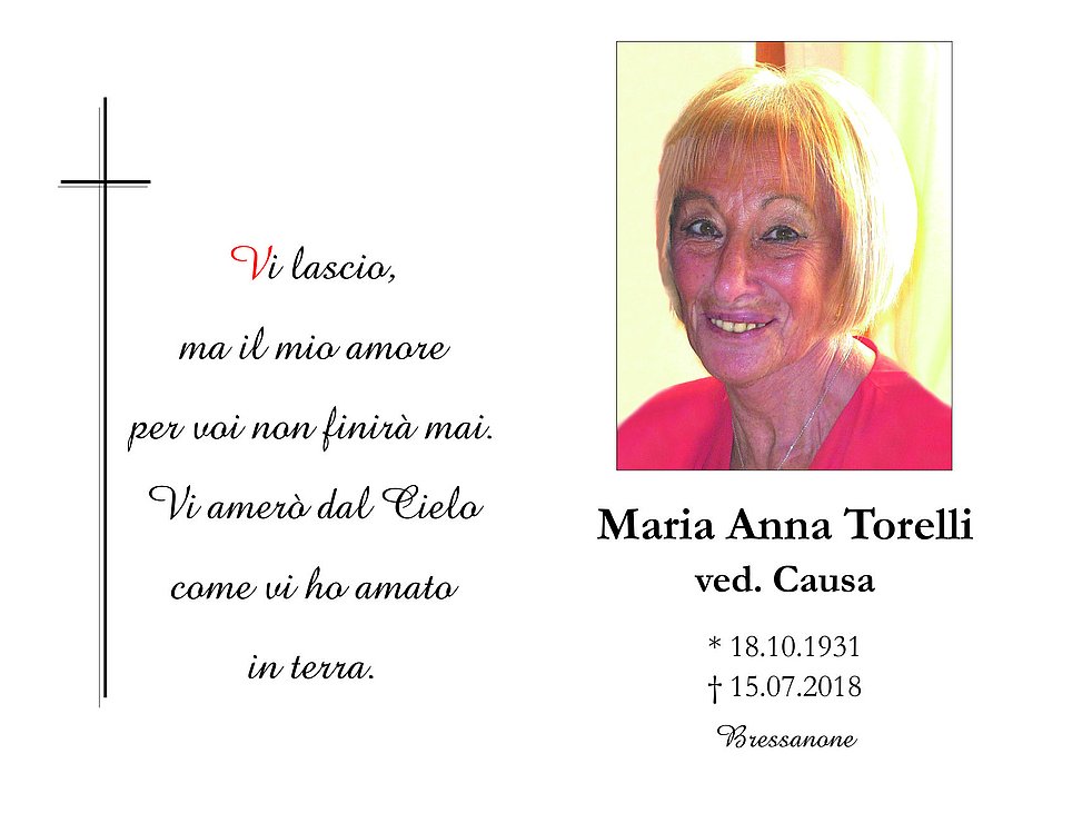 Il giorno 15 luglio è mancata all‘affetto dei suoi cari