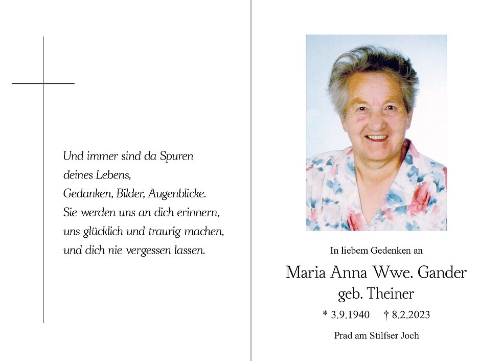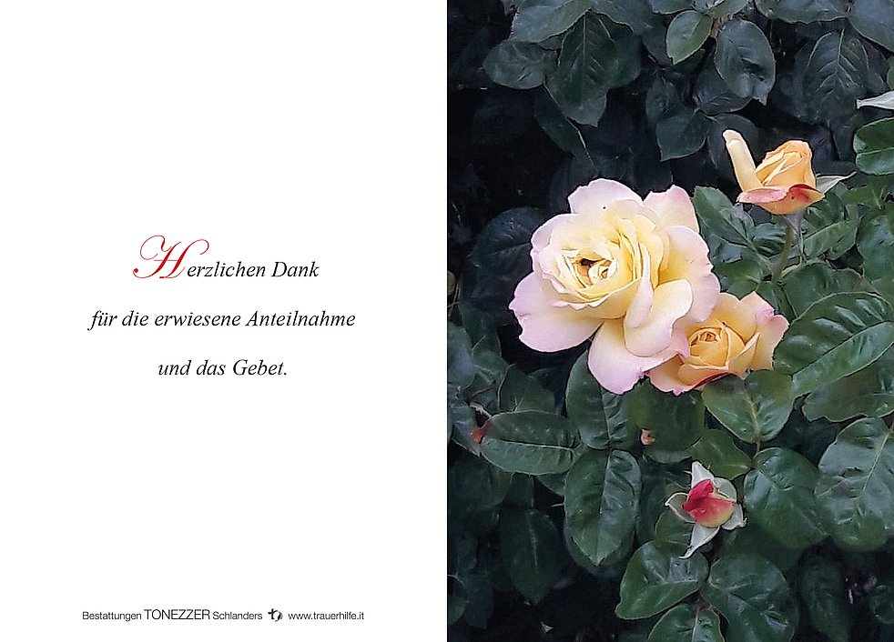 Die Urnenbeisetzung findet zu einem späteren Zeitpunkt im engsten Familienkreis im Ortsfriedhof statt.
