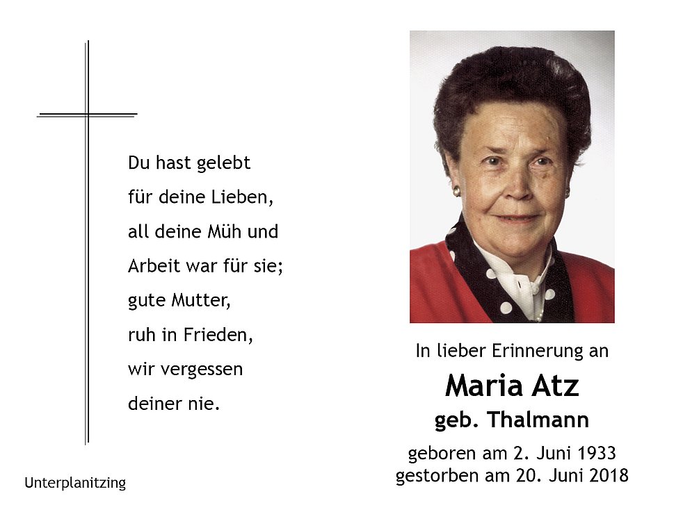 Allen, die am Rosenkranz und an der Beerdigung teilnehmen, im Voraus ein herzliches Vergelt´s Gott.