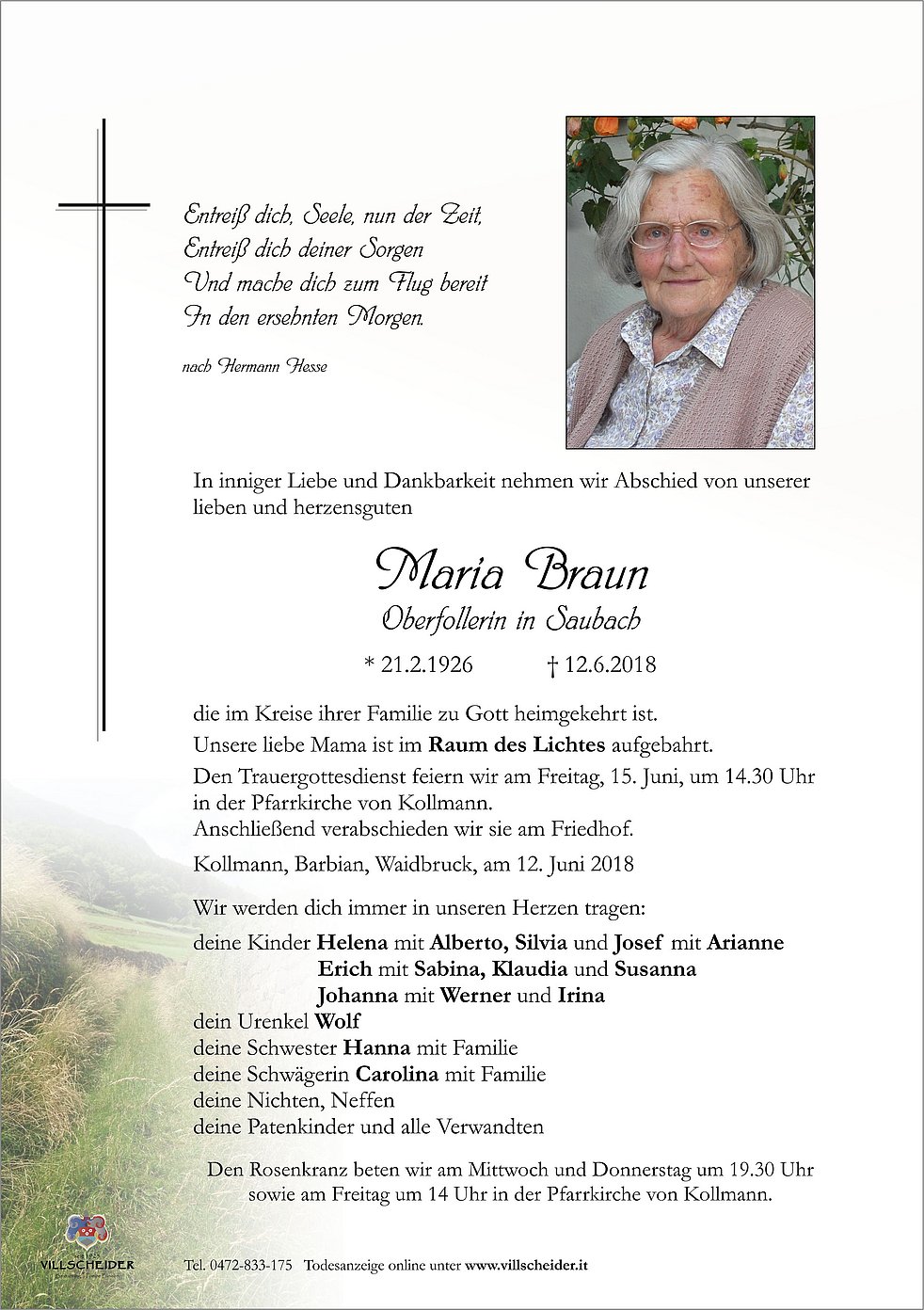 Den Trauergottesdienst feiern wir am Freitag, 15. Juni, um 14.30 Uhr in der Pfarrkirche von Kollmann.