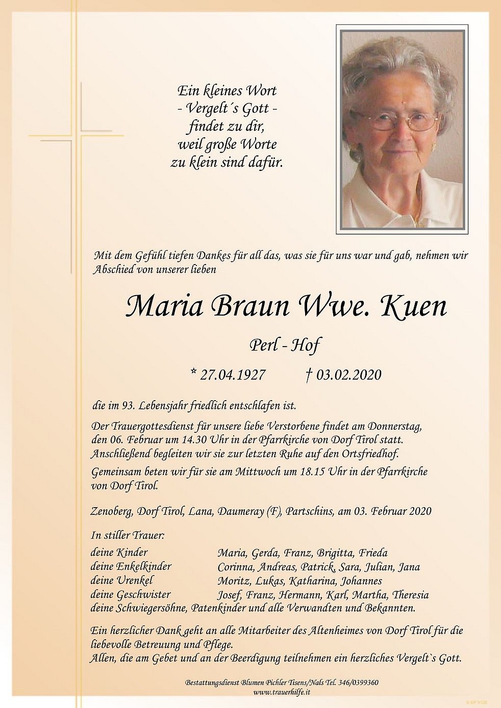 die im 93. Lebensjahr friedlich entschlafen ist.