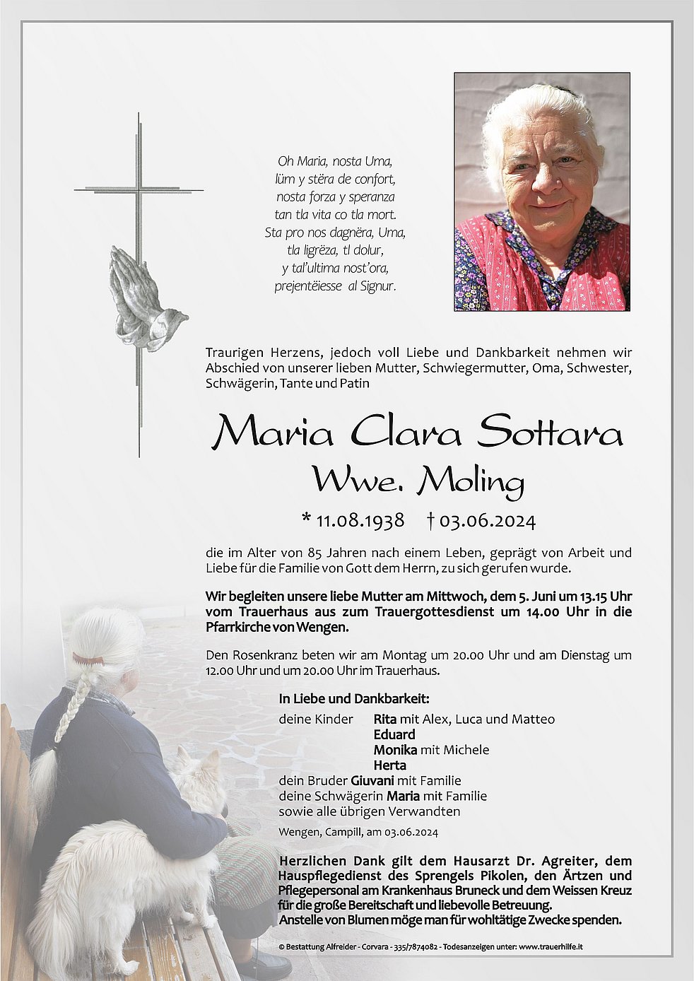 Begräbnisgottesdienst: 05.06. - 14:00 Uhr Pfarrkirche Wengen