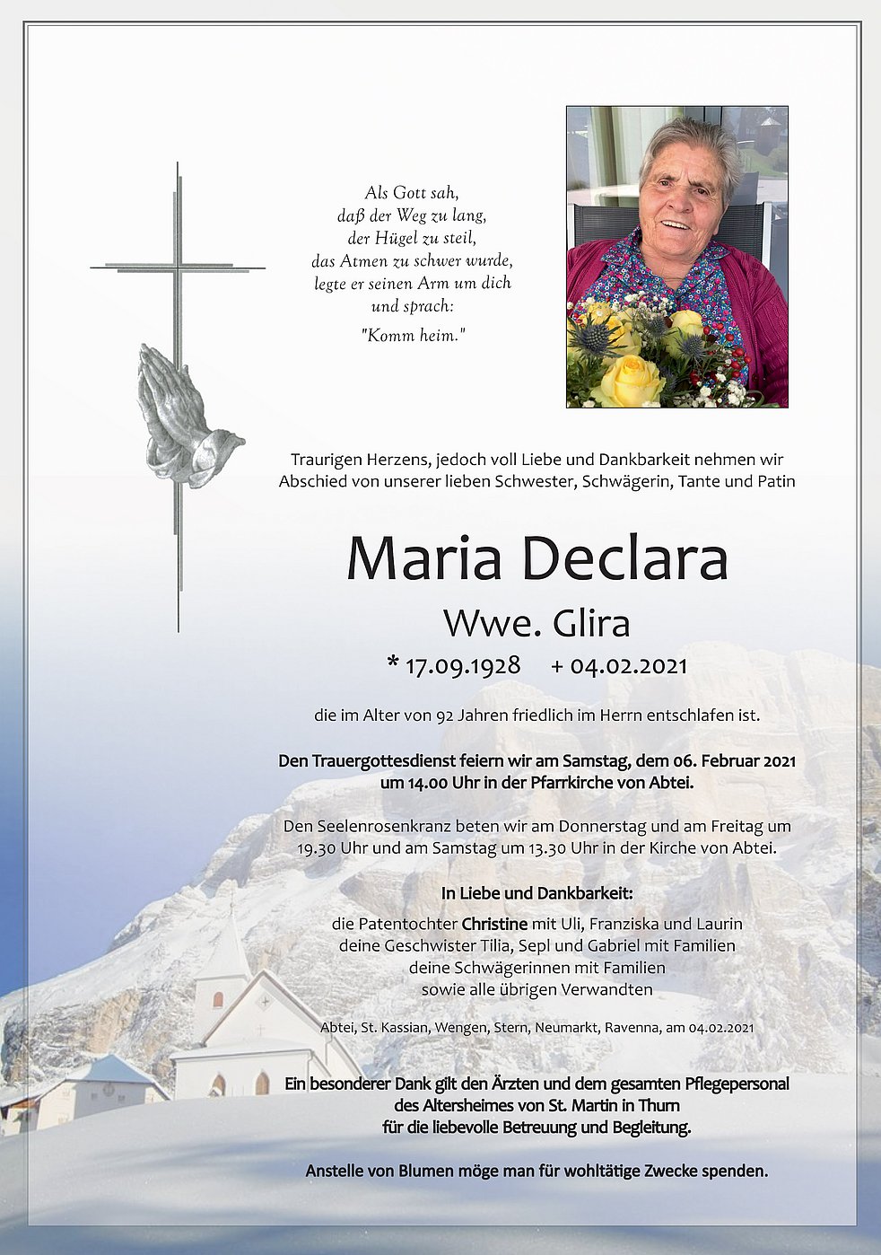 Den Trauergottesdienst feiern wir am Samstag, dem 06. Februar 2021 um 14.00 Uhr in der Pfarrkirche von Abtei.